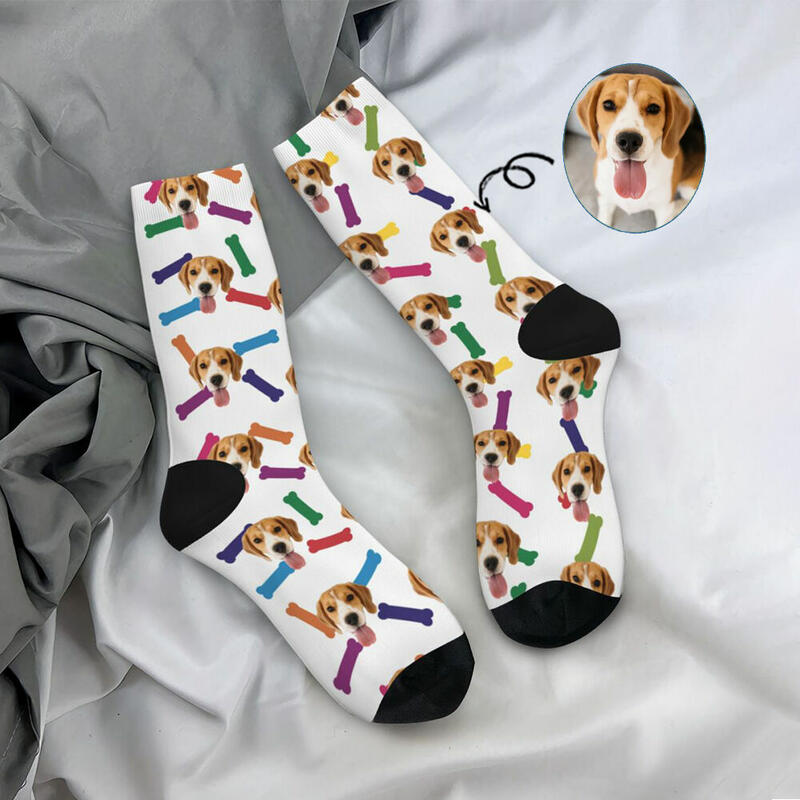 犬 ペット 写真プリント 骨 ソックス 靴下 オリジナル