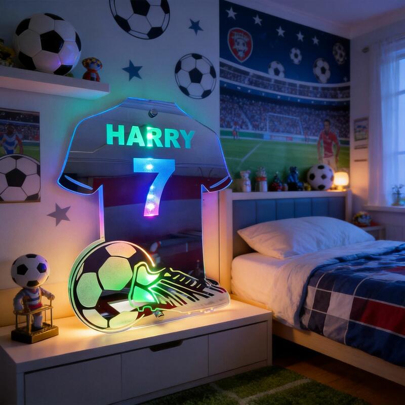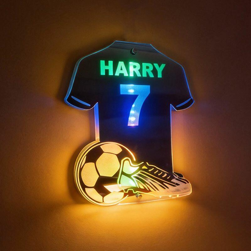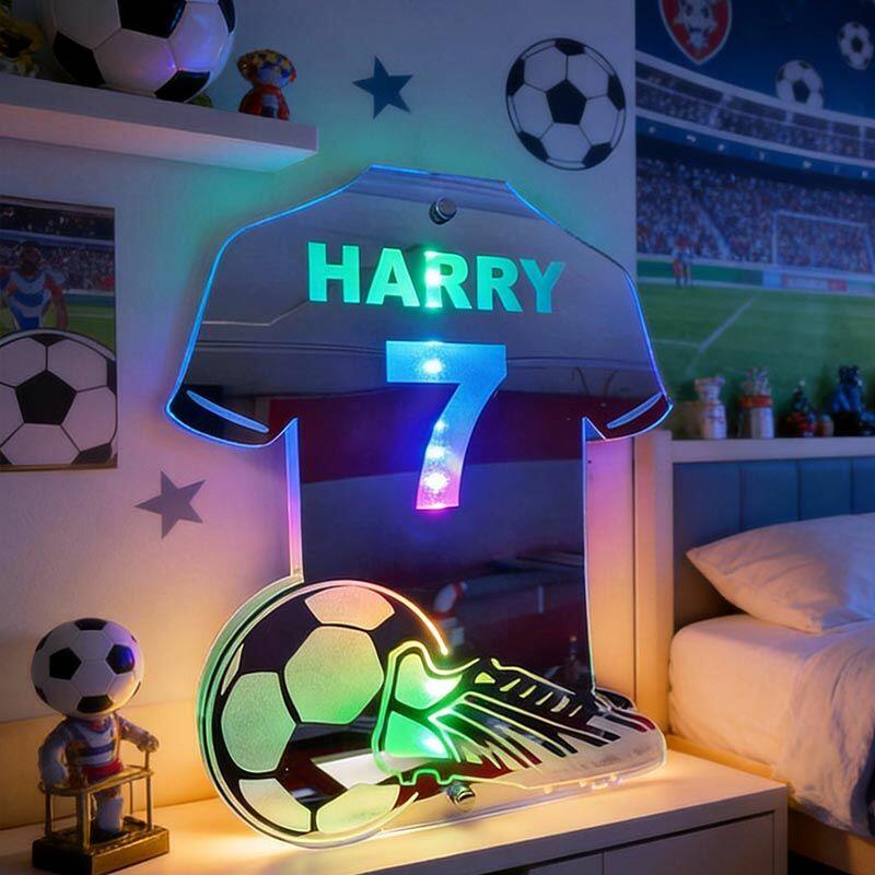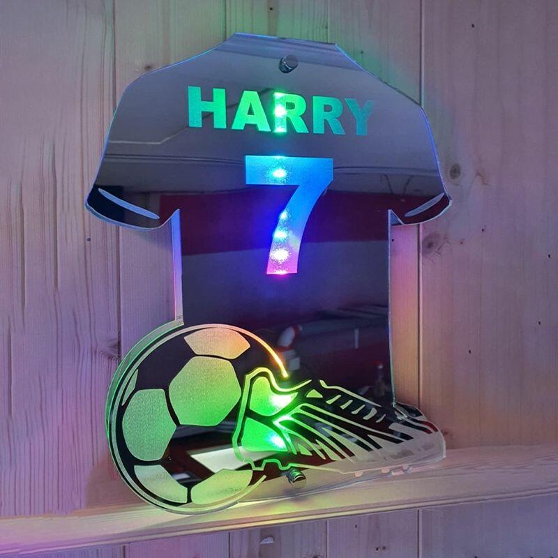 オリジナル 名入れ LED ミラー 発光 ライト サッカー 背番号 壁掛け 12色変化 屋内装飾 リモコン付き 壁フック付き
