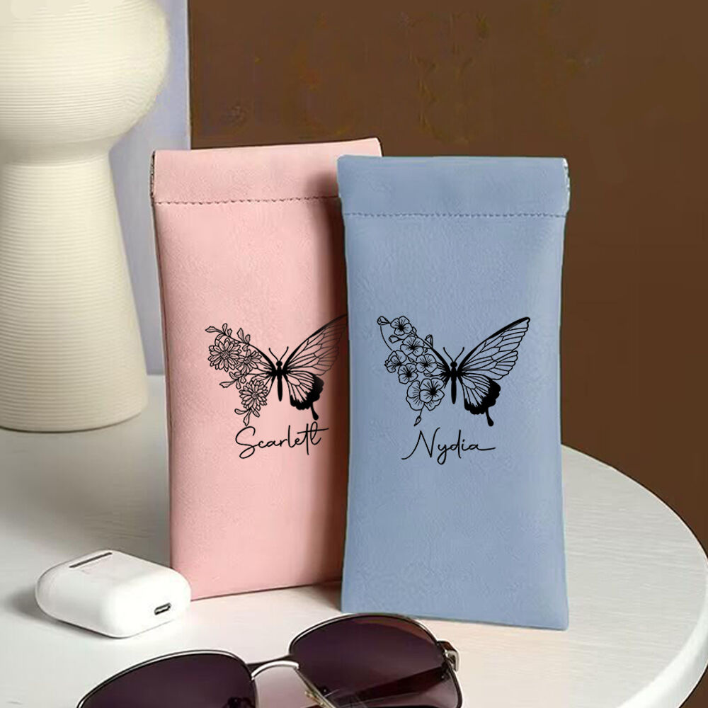 カスタマイズ メガネケース 誕生花入り 名入れ 蝶 チョウ フラワー プレゼント