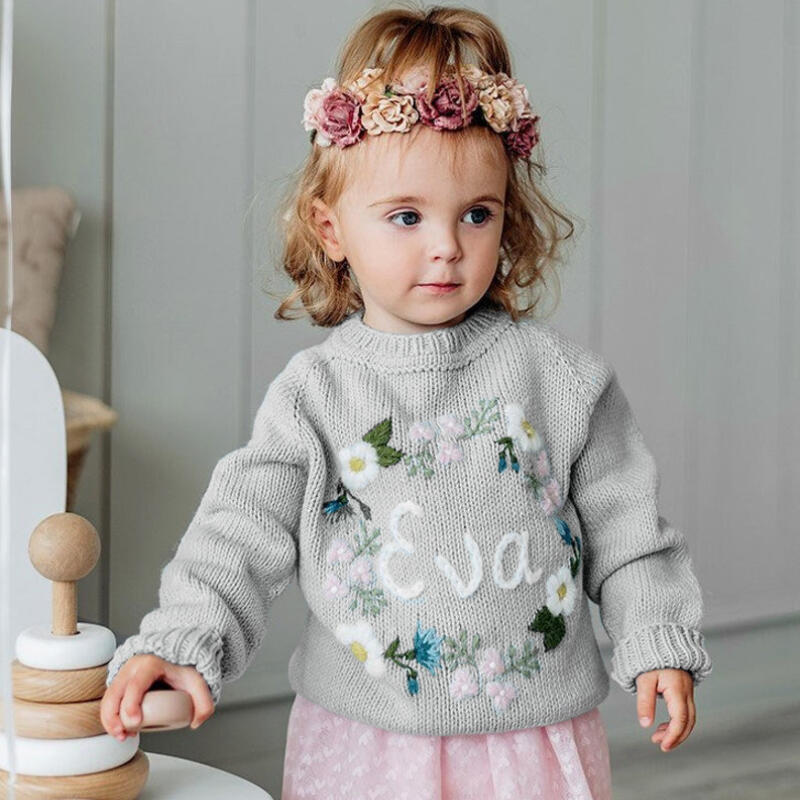 キッズ 子供服 セーター 花輪 名入れ 冬 女の子 男の子 娘 息子 保育園 素敵 ギフト カスタマイズ