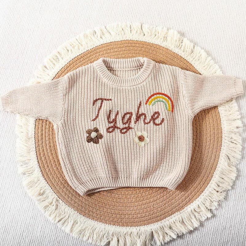 キッズ 子供服 ニット 虹柄 レインボー 名前入り 女の子 男の子 娘 息子 幼稚園 プレゼント カスタマイズ