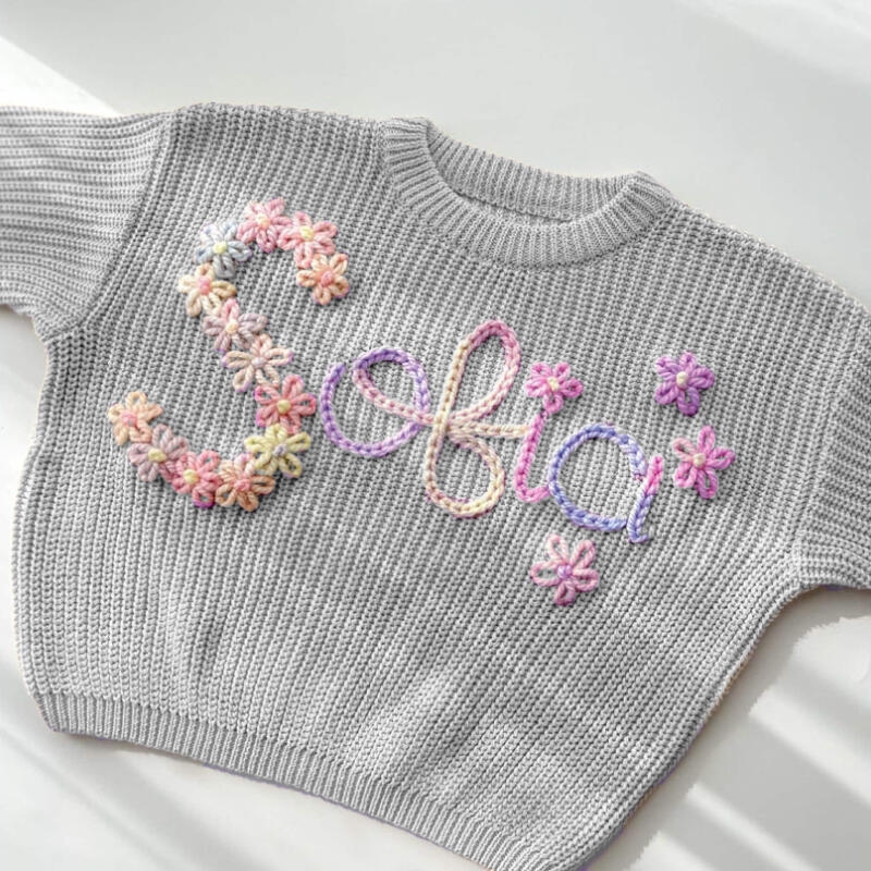 キッズ 子供服 セーター カラフル 花 フラワー 名入れ 春 女の子 男の子 娘 息子 保育園 ギフト カスタマイズ