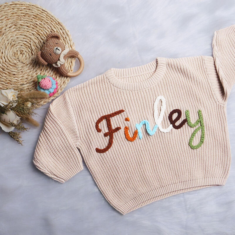 子供服 キッズ ニット セーター カラフル文字 名前入り おしゃれ プレゼント 娘 女の子 男の子 カスタマイズ