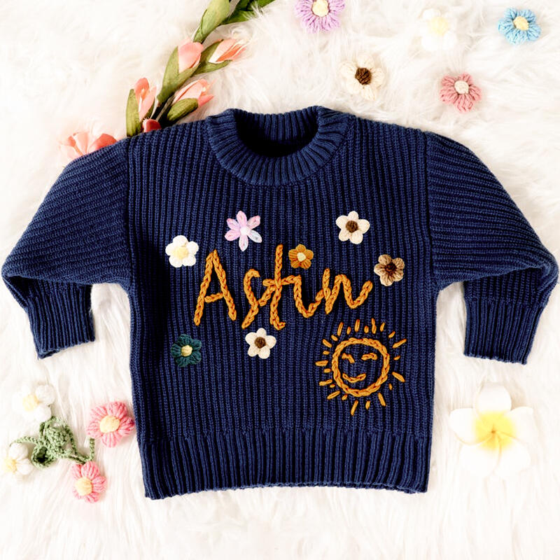 キッズ 子供服 セーター 太陽柄 フラワー 名入れ 女の子 娘 保育園 かわいい ギフト カスタマイズ