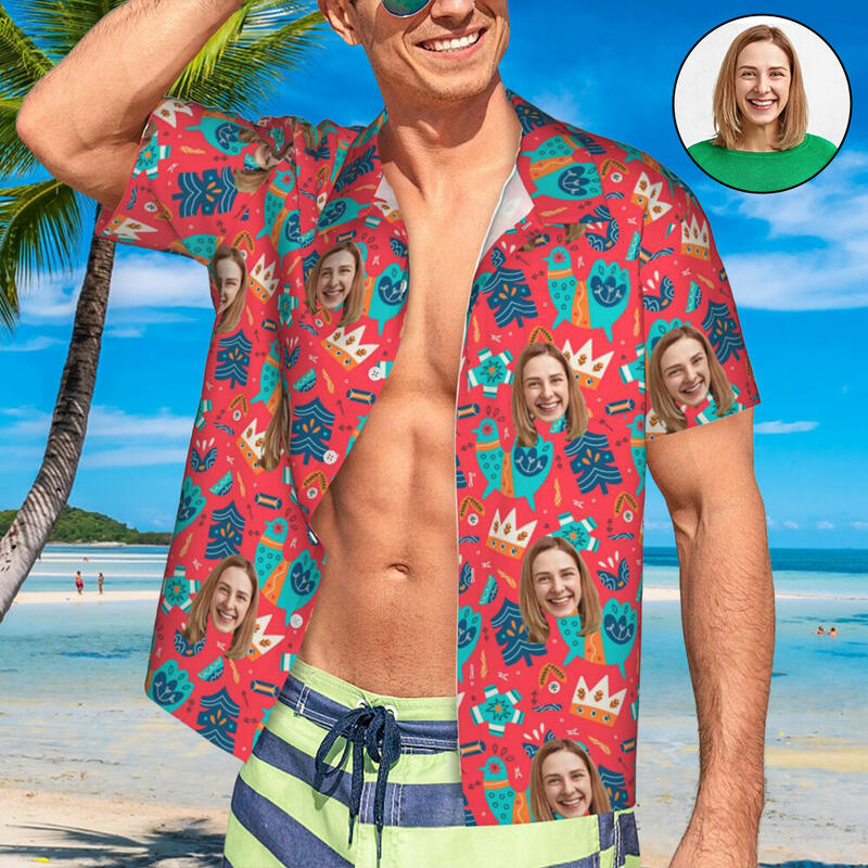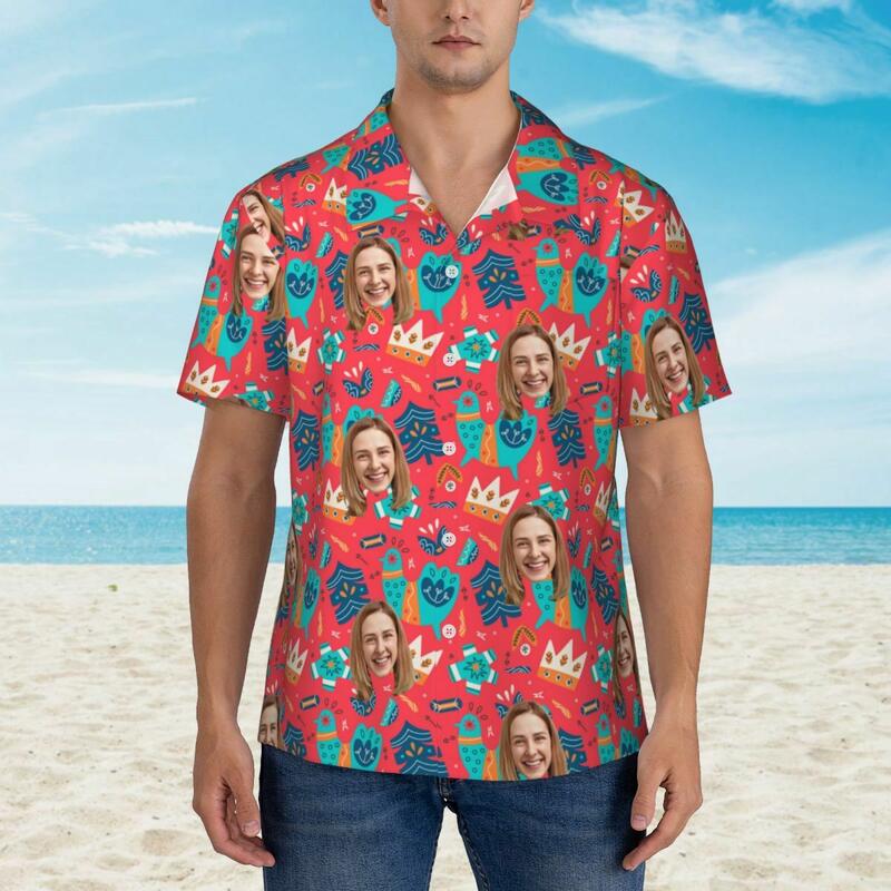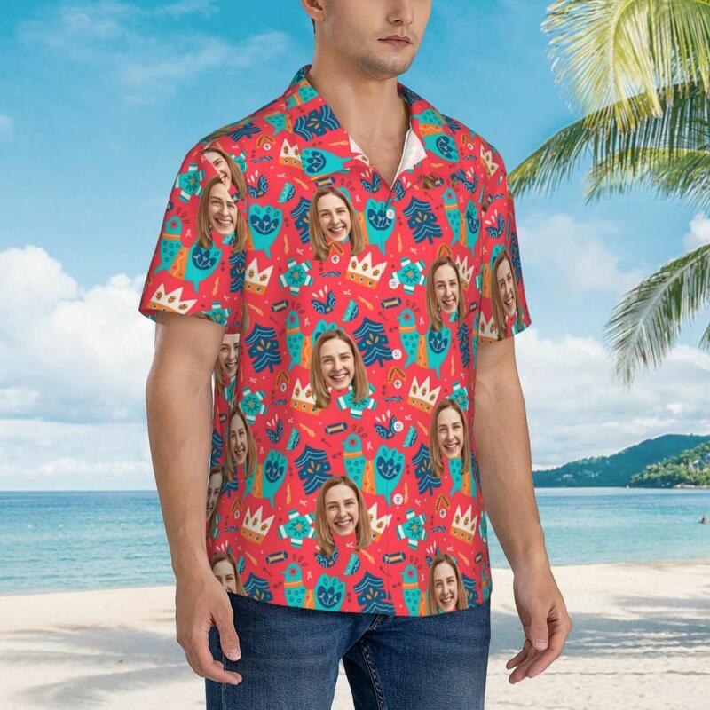 顔写真 似顔絵 総柄 ハワイアン シャツ メンズ 開襟 ポリエステル