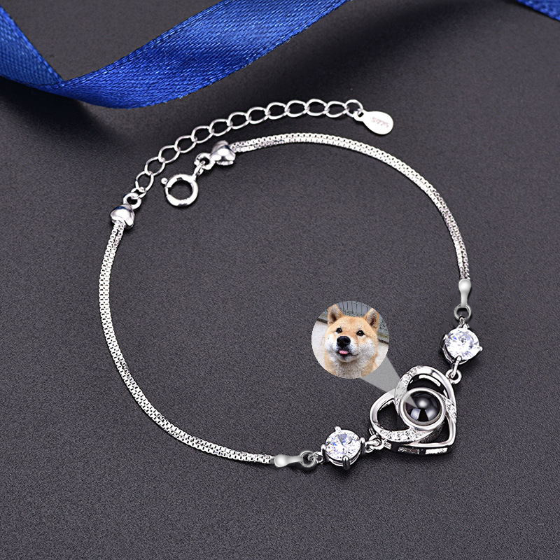 パッと見は普通のブレスレットのように見えますが、ライトを当てると思い出のある大切な写真が投影されます。