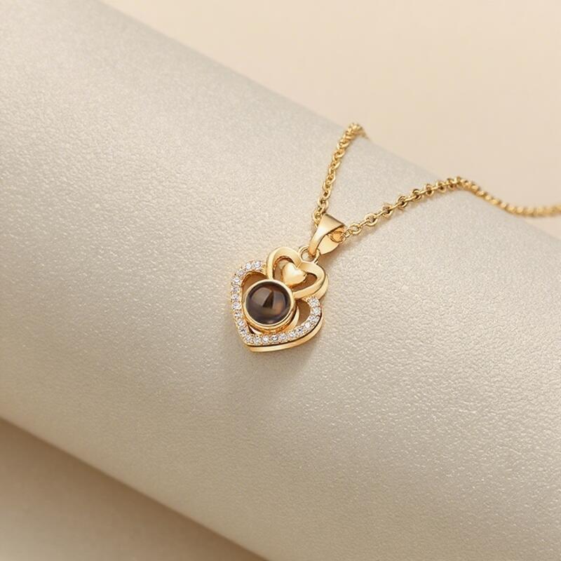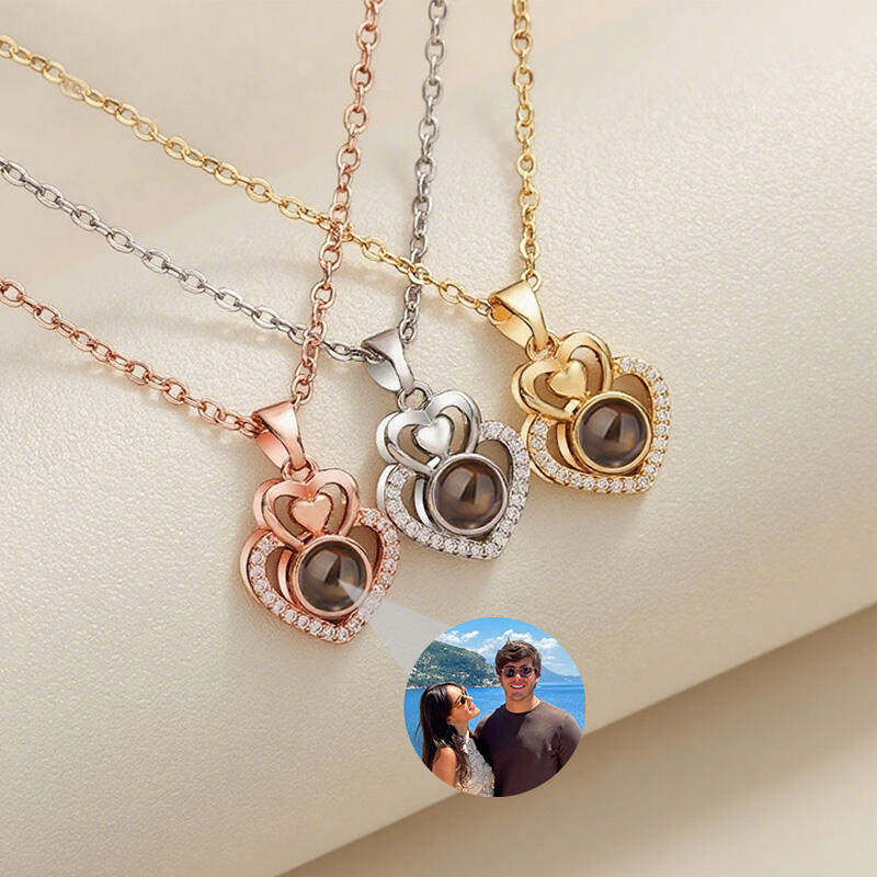 投影ネックレスはナノテクノロジー技術を用いて、写真をストーンの中にセッティングして、スマホのライトを中心部分にかざすと、お気に入りのベストショットが浮かび上がります。