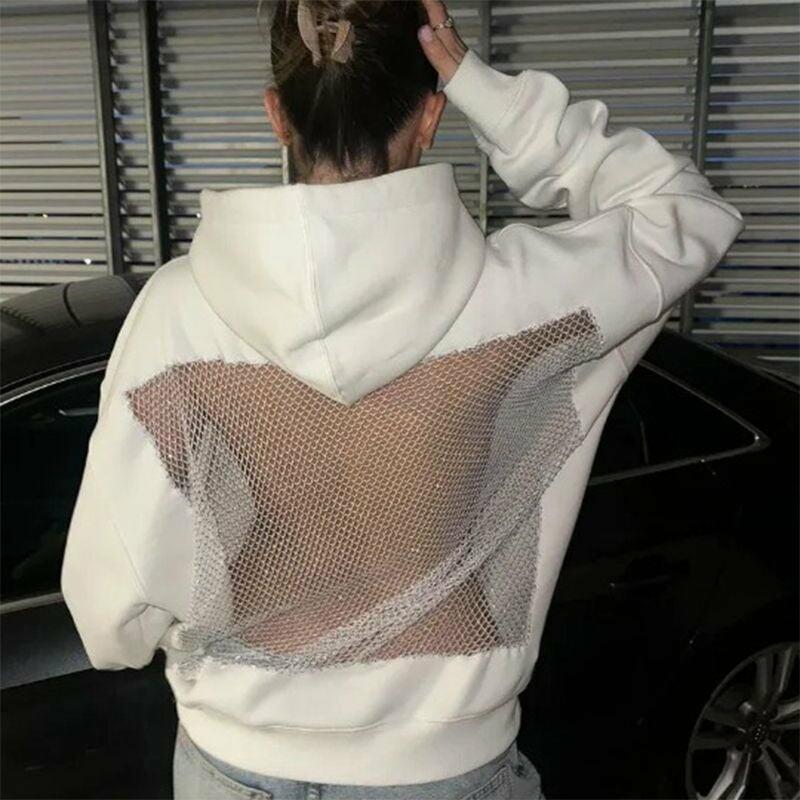 季節のコーデを一気に格上げる、セクシーレース透かし編みバックレスパーカー。