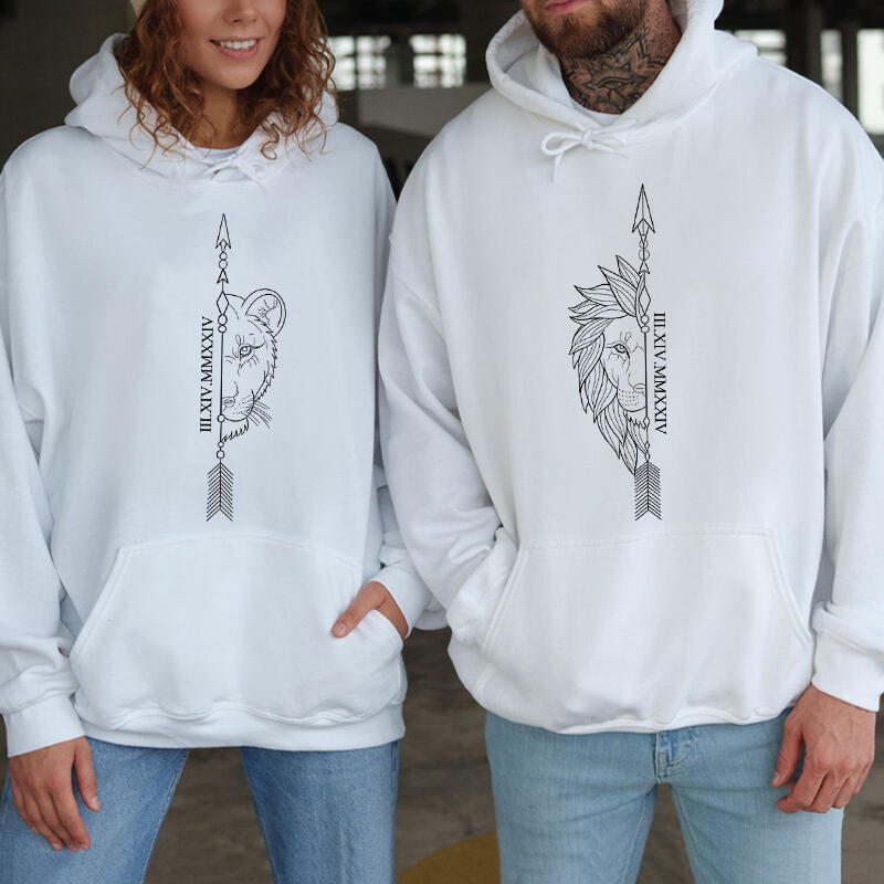 オリジナル ライオン ローマ数字 パーカー フーディー カップル ペアルック