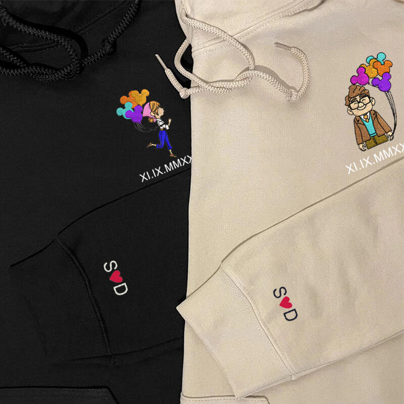ローマ数字 ハート カートン 刺繍 カップル パーカー フーディー オリジナル