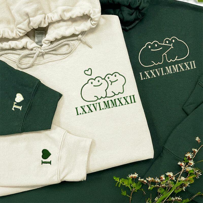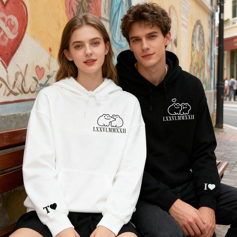 日付 イニシャル ローマ数字 刺繍 スウェット トレーナー フーディー オリジナル