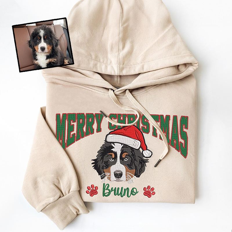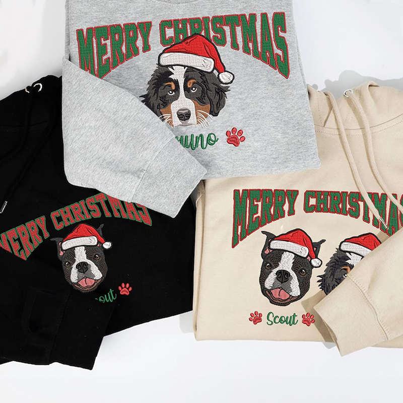 犬 ペット 写真 刺繍 文字 名入れ クリスマス サンタハット トレーナー スウェット オリジナル