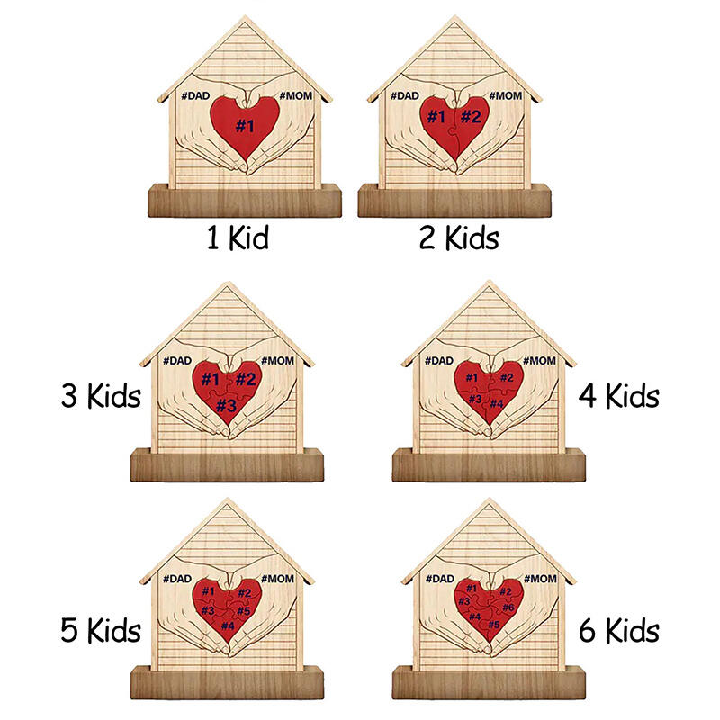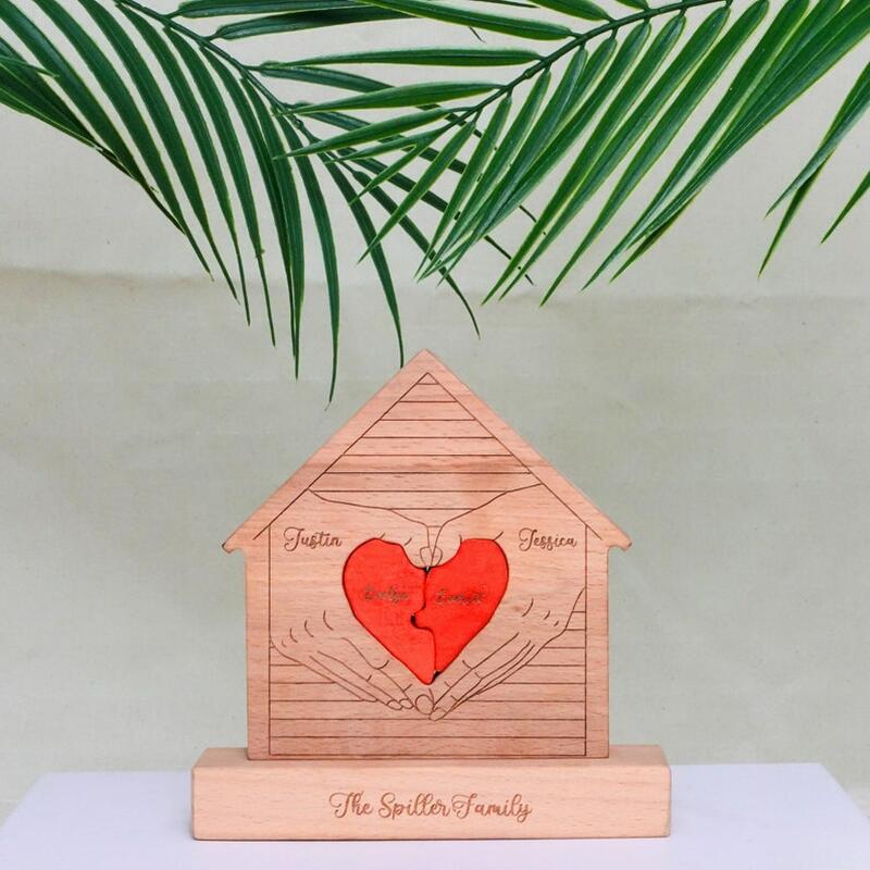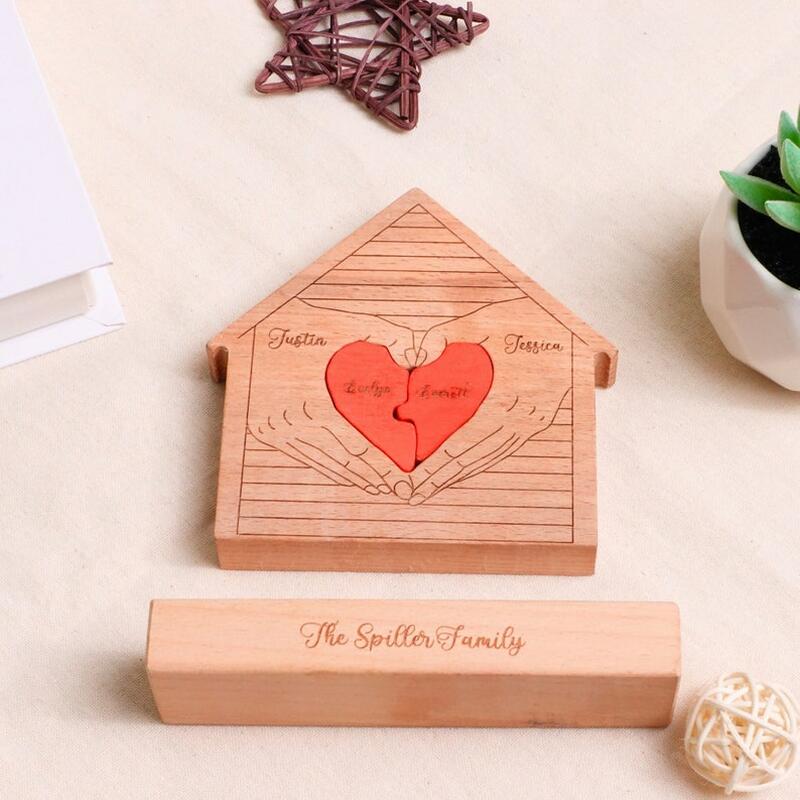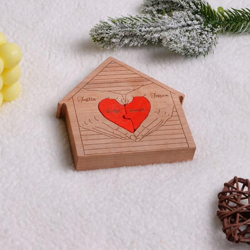 カスタマイズ ネーム入り ハウス 家 ホーム ハート 家族 ウッド パズル 木製 オブジェ 置物