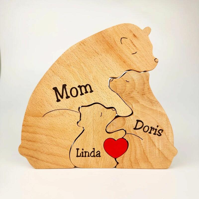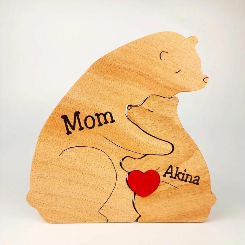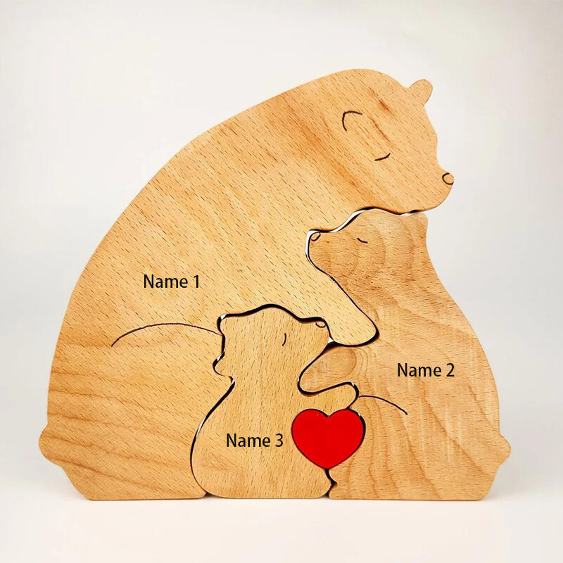 名入れ ウッド パズル ハグ熊 抱きしめるクマ 木製 オブジェ 置物 インテリア