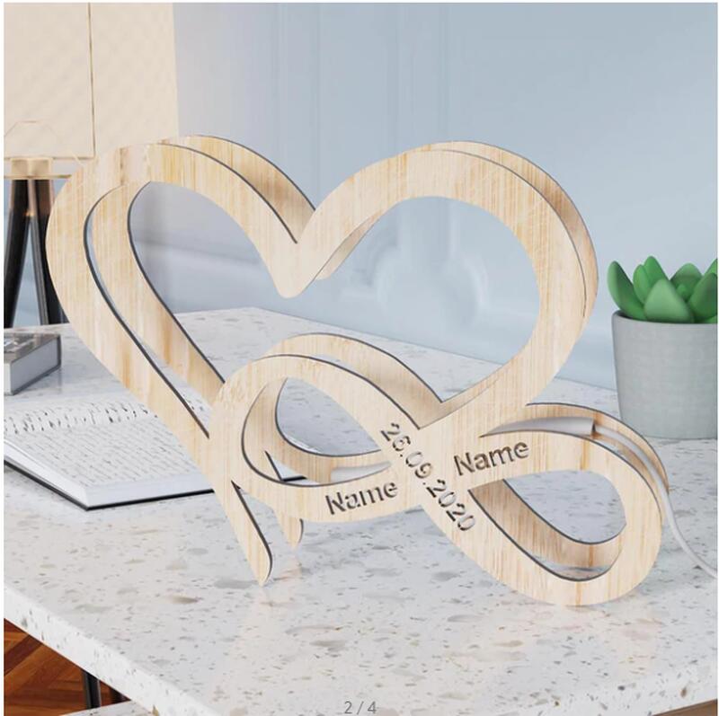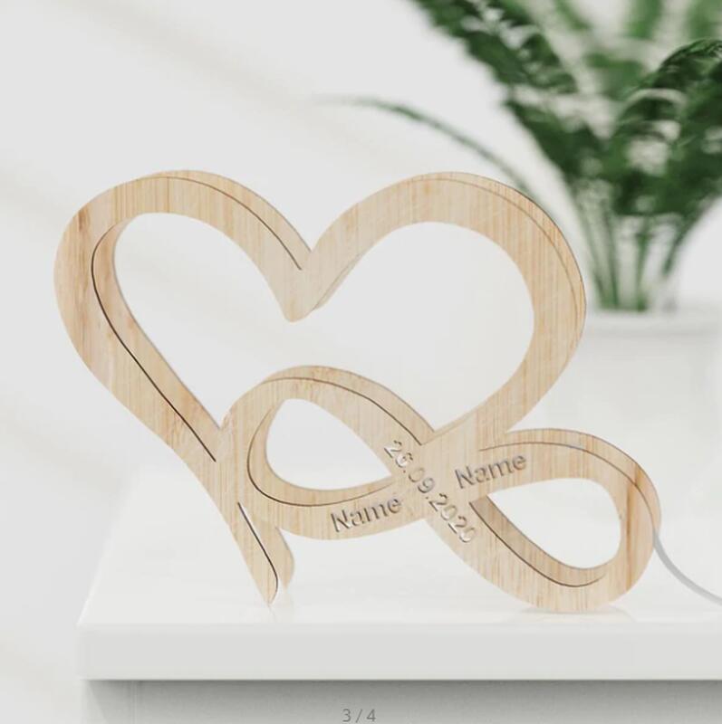 インフィニティ&ハート 木製 刻印 ナイトライト オーダーメイド