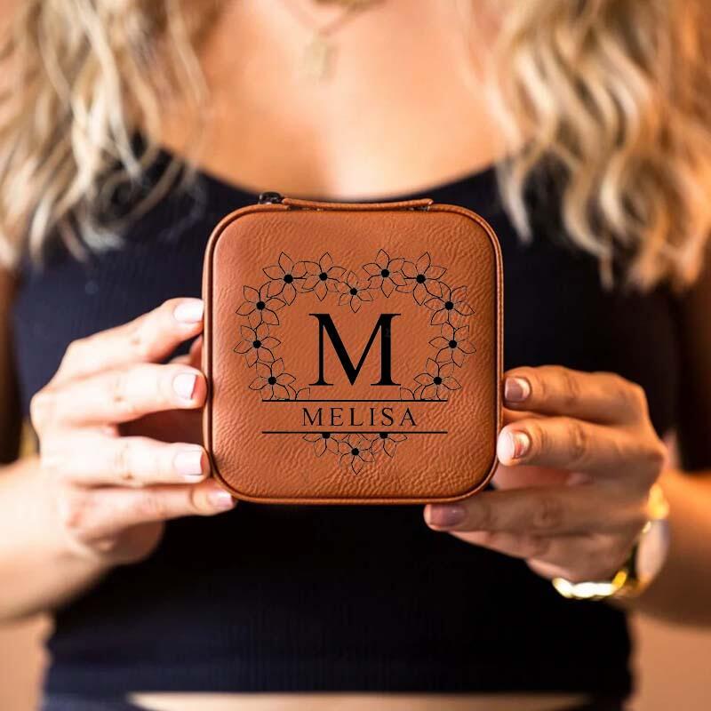 カスタマイズ スクエア イニシャル 名前 ファスナー式 PVCレザー ジュエリーボックス