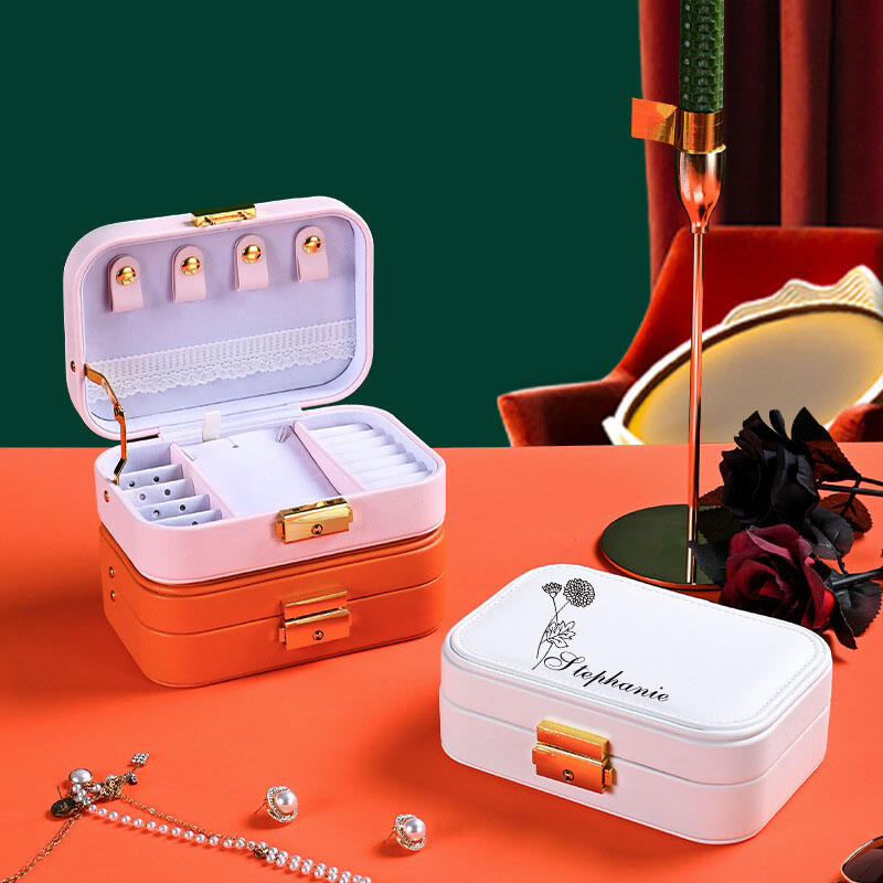 カスタマイズ 誕生花 名前 メッセージ PUレザー ジュエリーボックス