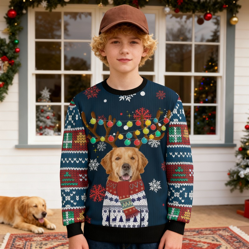 写真入り 犬&猫 ペット クリスマス柄 子供服 キッズ セーター オリジナル