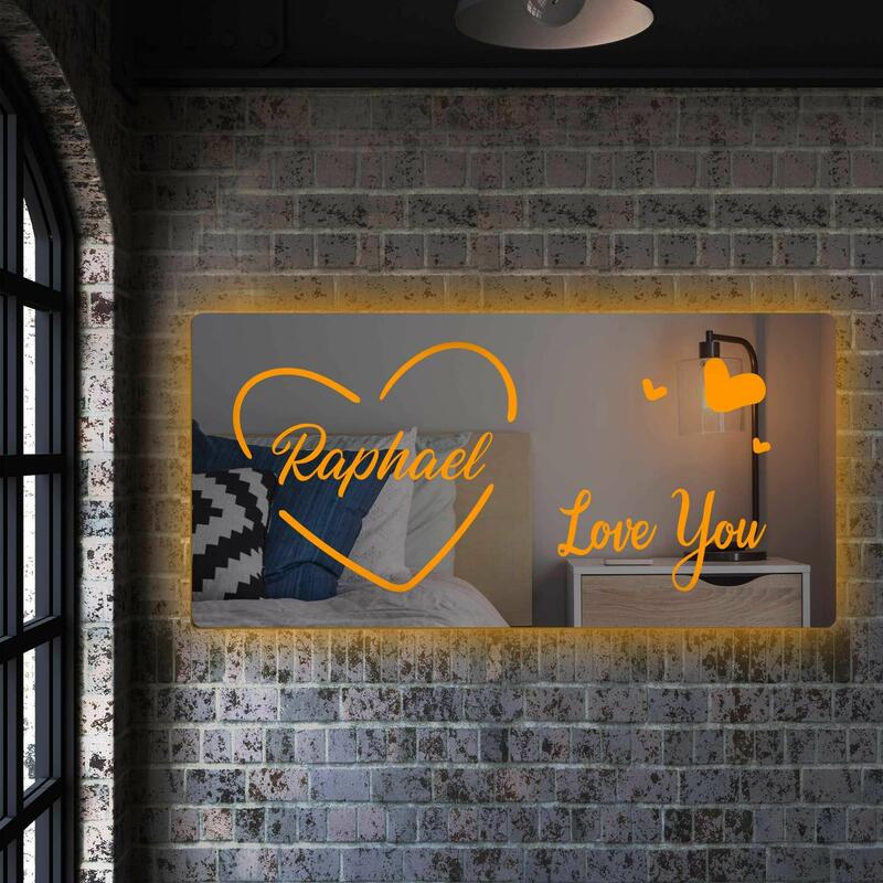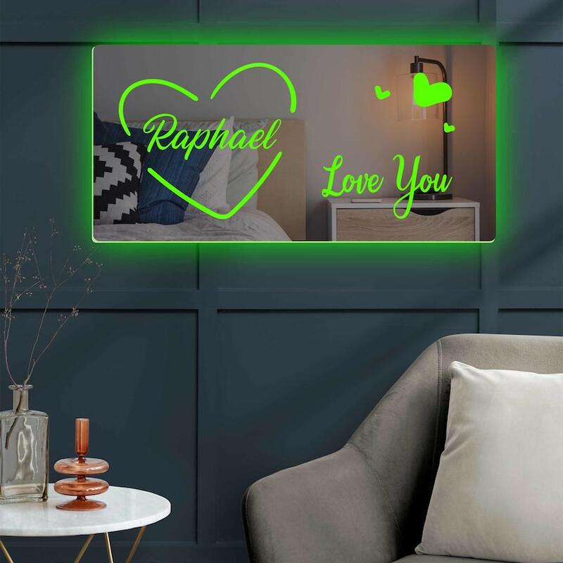 カスタマイズ 名前 文字入れ LED ミラー 発光 ライト 壁掛け 12色変化 屋内装飾 リモコン付き 壁フック付き