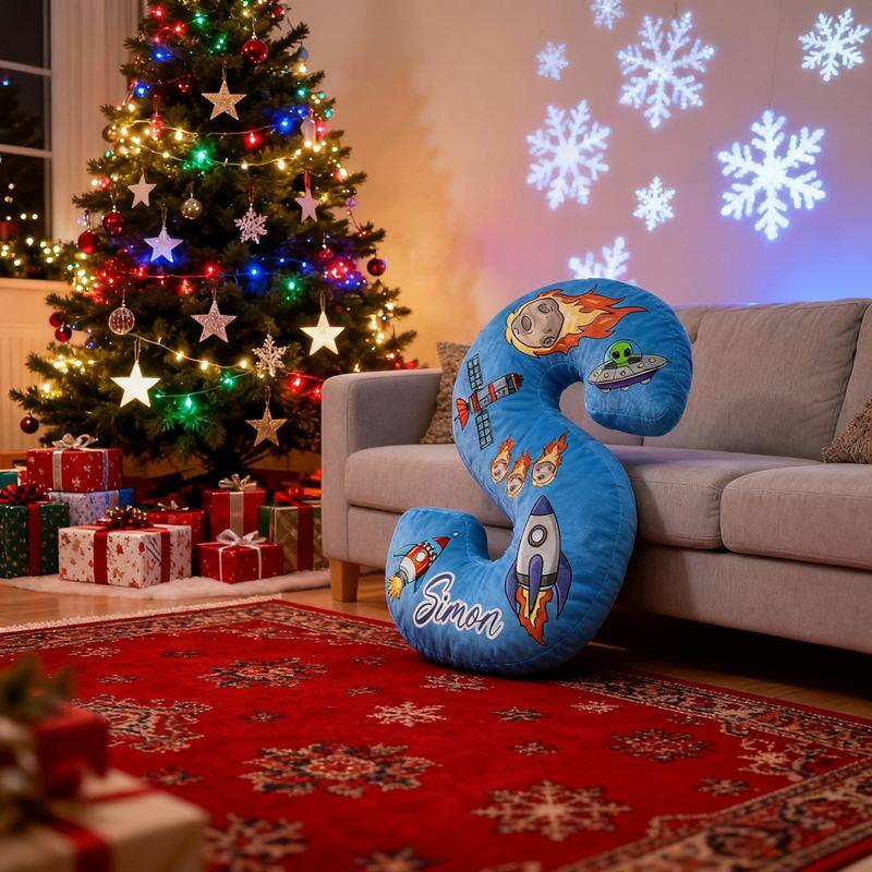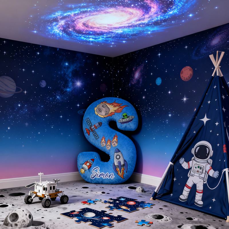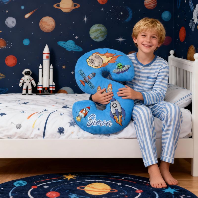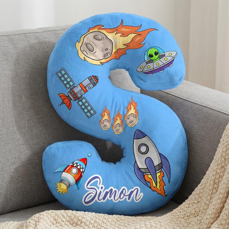 イニシャル形 名入れ ロケット柄 抱き枕 クッション オリジナル