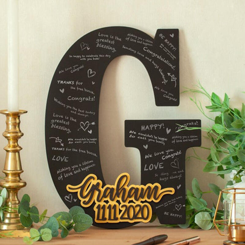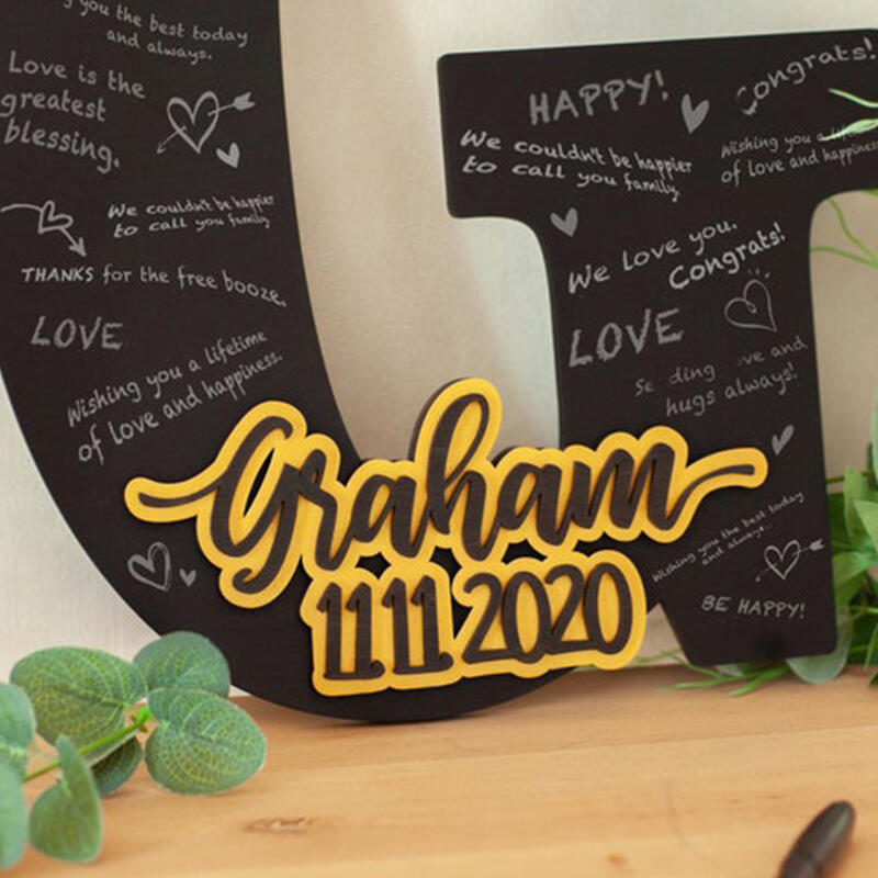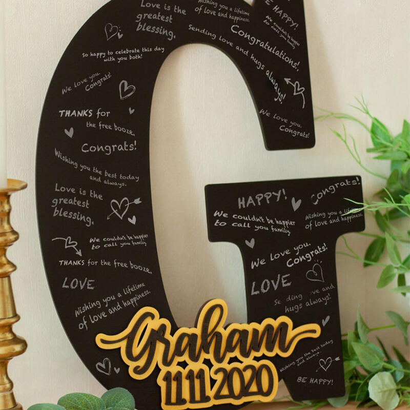 カスタムイズ イニシャル 日付き 木製 ゲストブック ウェルカムスペース