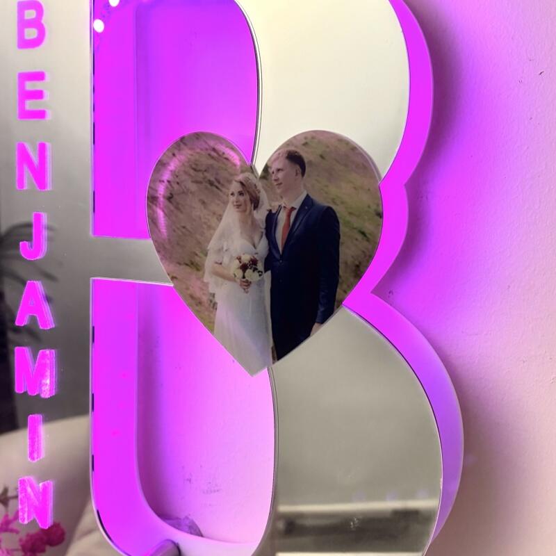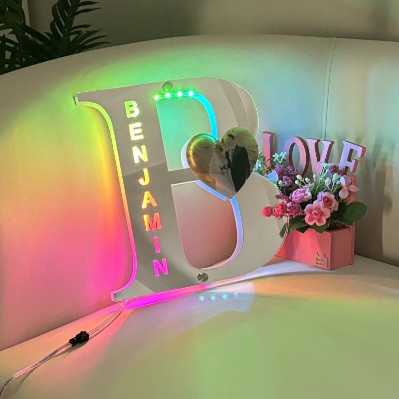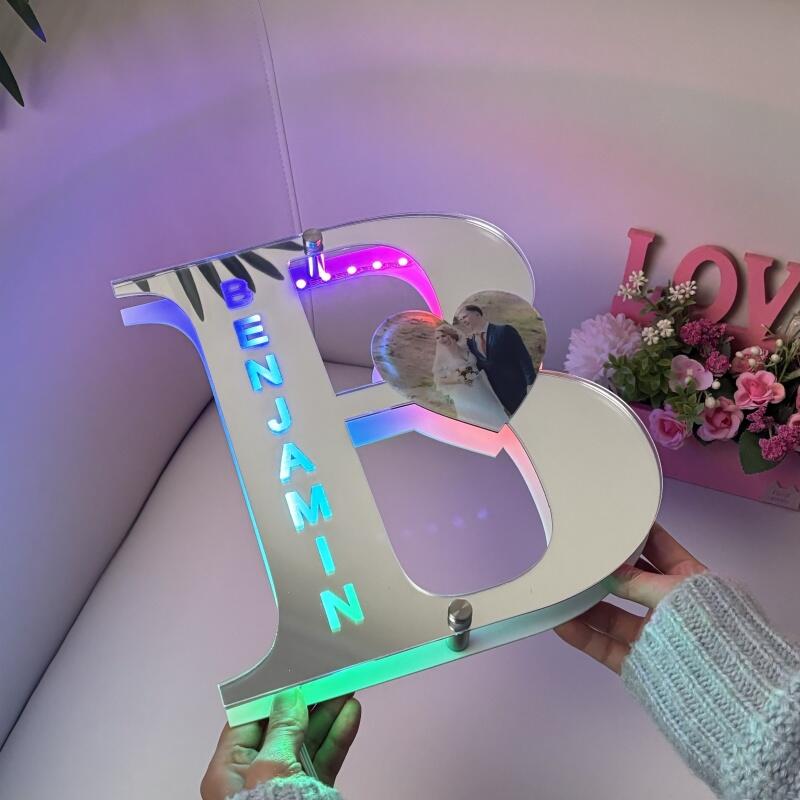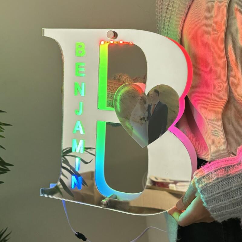 カスタムイズ イニシャル 名入れ ミラー 発光 ライト 壁掛け 屋内装飾 リモコン付き 壁フック付き プレゼント