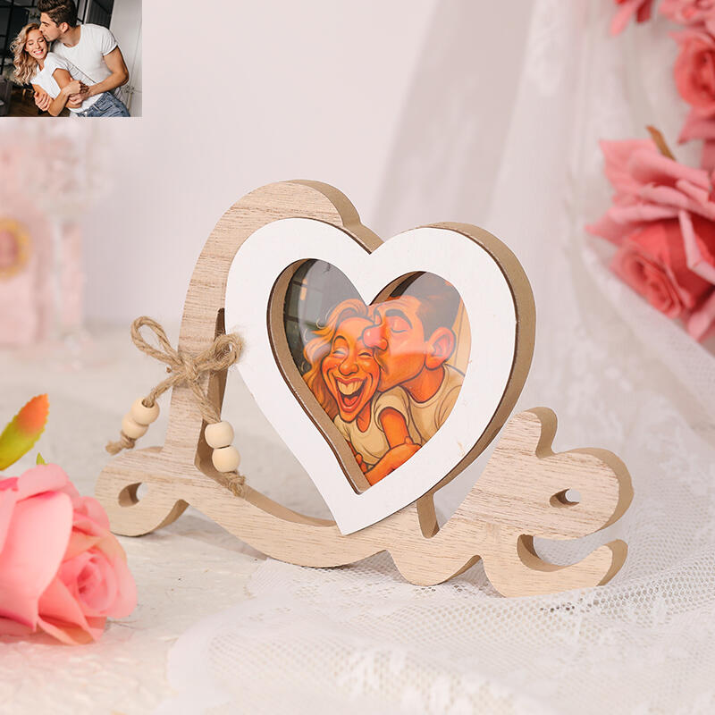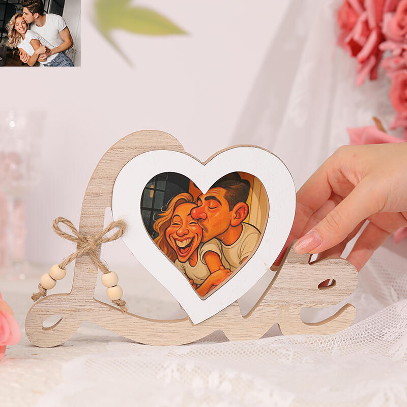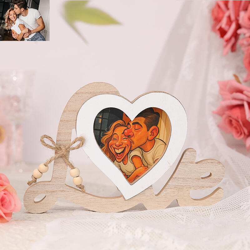 オーダーメイド Love 漫画風 写真入り 木製 フォト フレーム バレンタインデーギフト