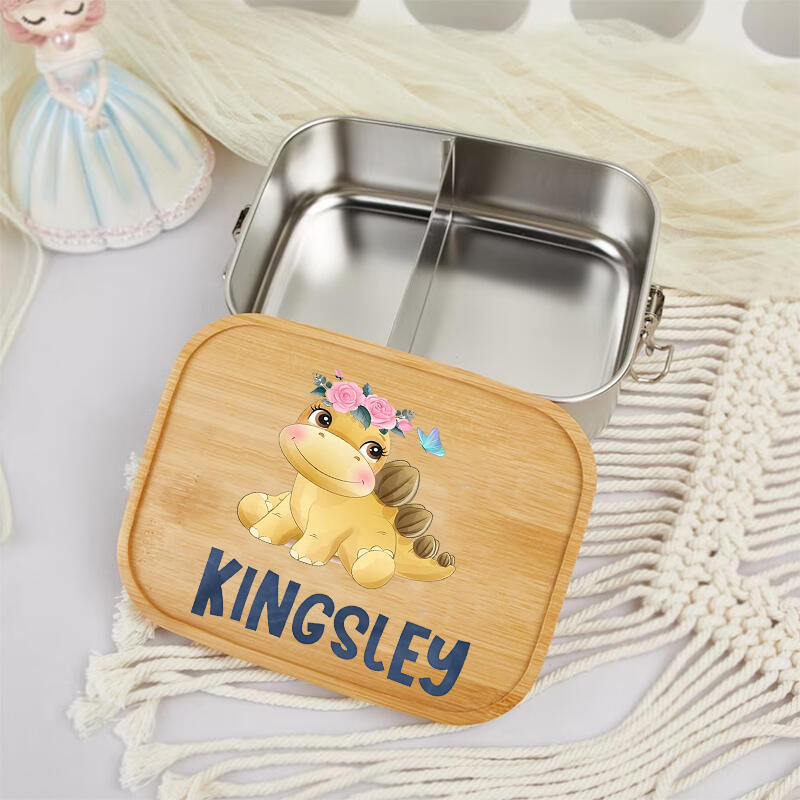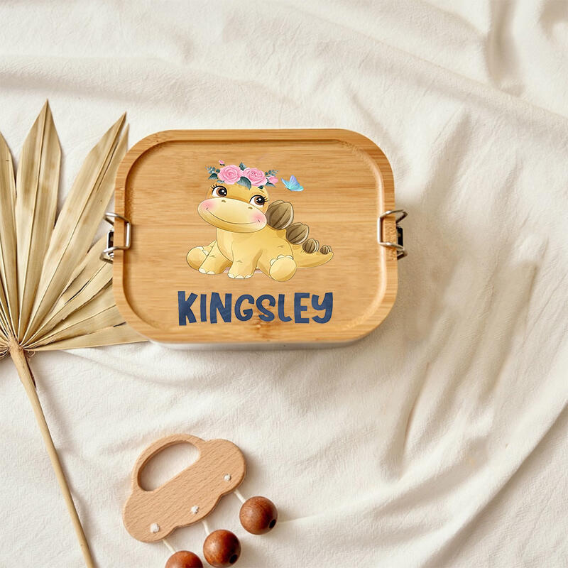 恐竜デザイン 名入れ お弁当箱 ステンレス 木製 カスタマイズ