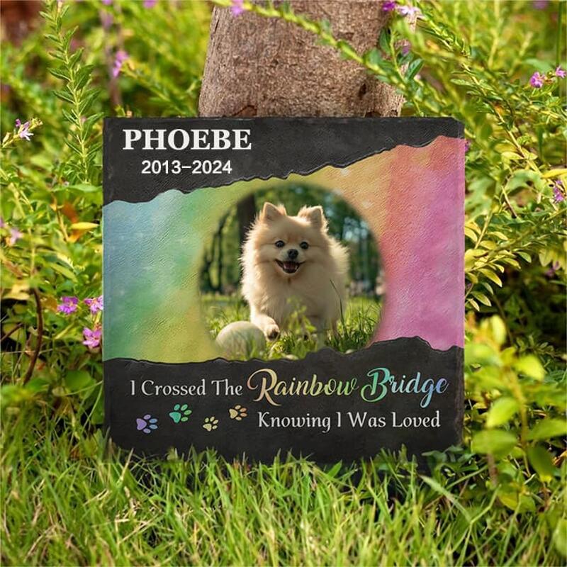 カスタマイズ 写真 名入 正方形 レインボー ペット メモリアルストーン