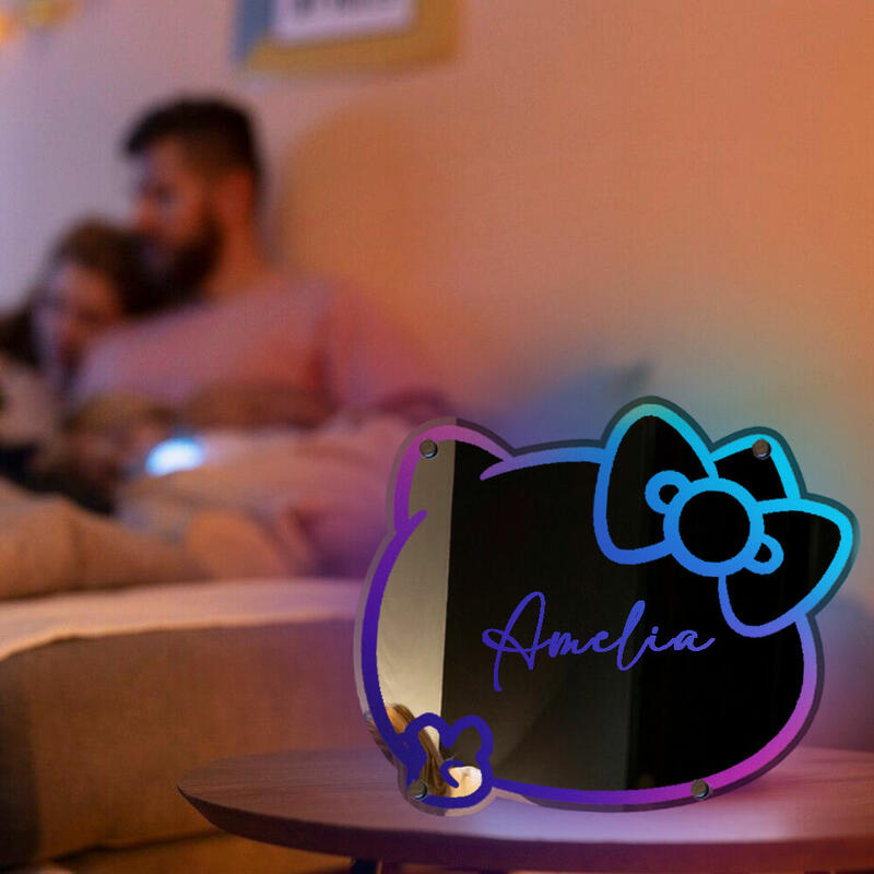オリジナル 名入れ 可愛い LED ミラー 発光 ライト 壁掛け 12色変化 屋内装飾 リモコン付き 壁フック付き