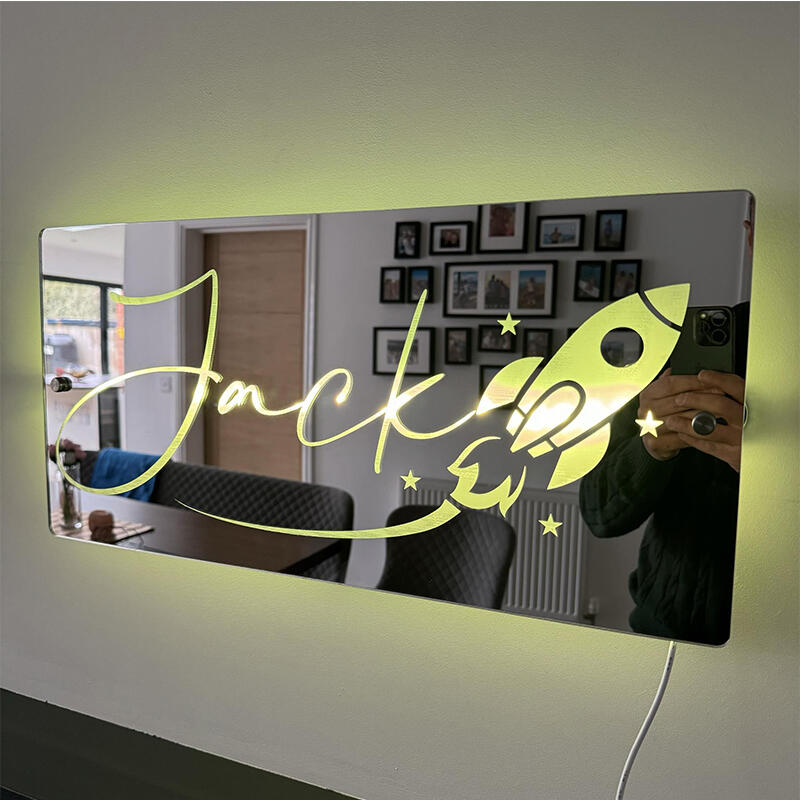 オリジナル 名入れ LED ミラー 発光 ライト 壁掛け 12色変化 屋内装飾 リモコン付き 壁フック付き