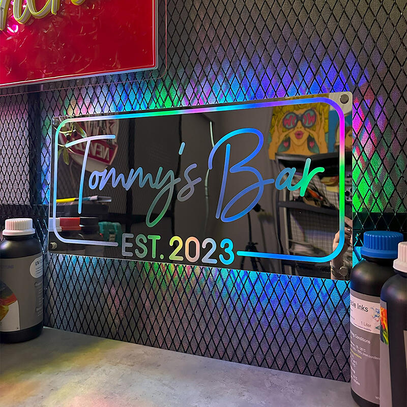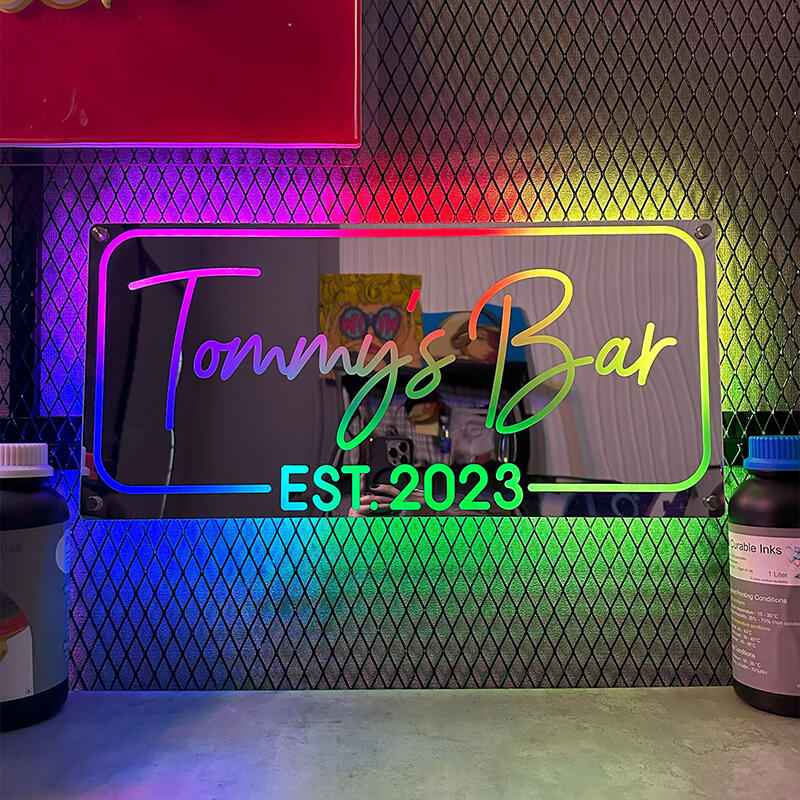 オリジナル 文字入れ LED ミラー 発光 ライト 壁掛け 12色変化 屋内装飾 リモコン付き 壁フック付き