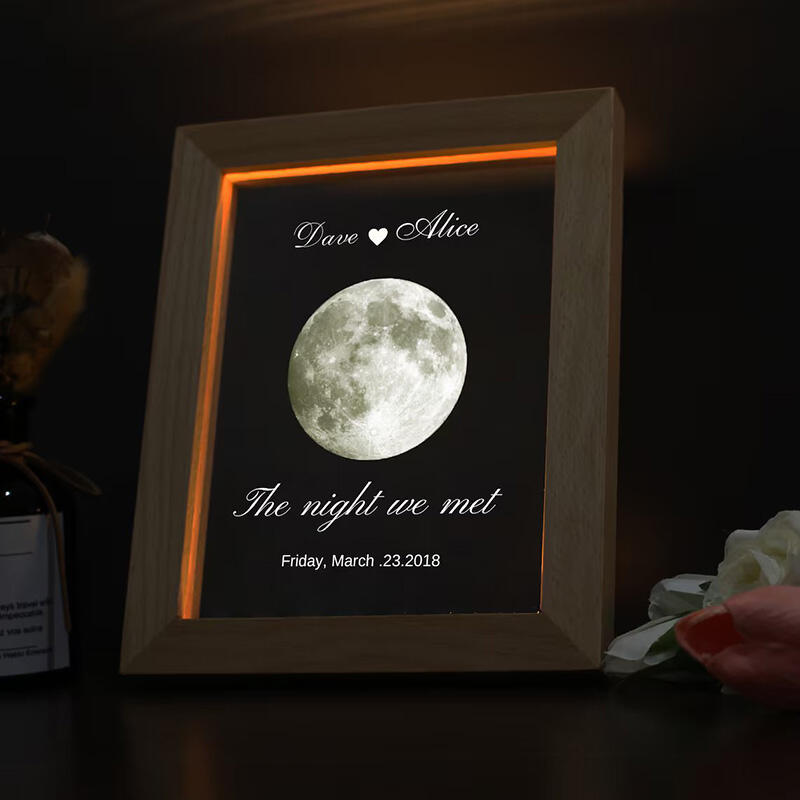 当日の月の写真をフレームに刻み、思い出を永遠に残しましょう。