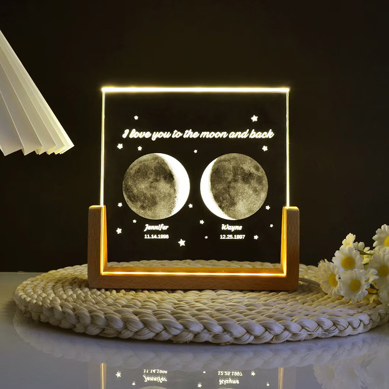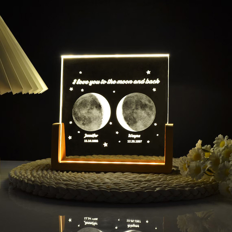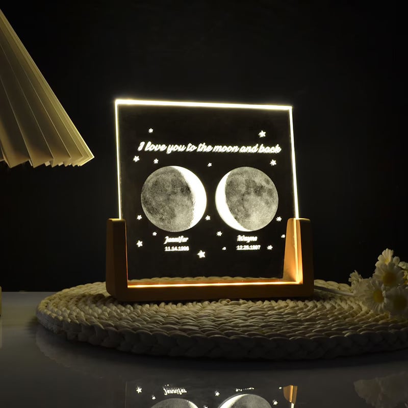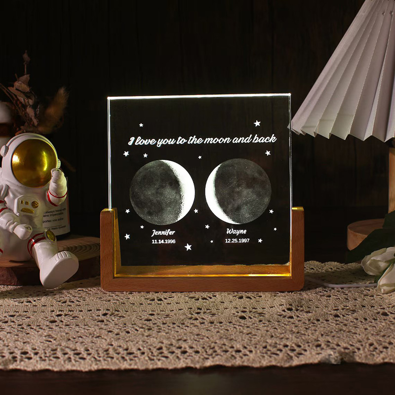ご希望のお誕生日や記念日をご記入いただければ、その日の美しい月相写真を特別なランプにお入れいたします。