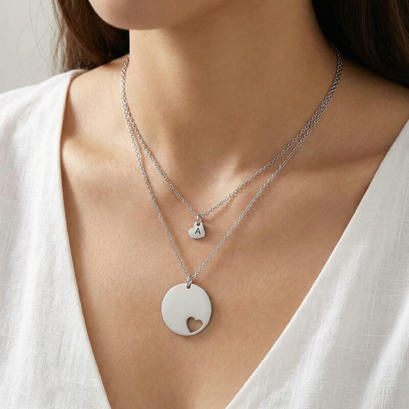 ペアネックレス ハート型ペンダント カスタマイズ アルファベット入り