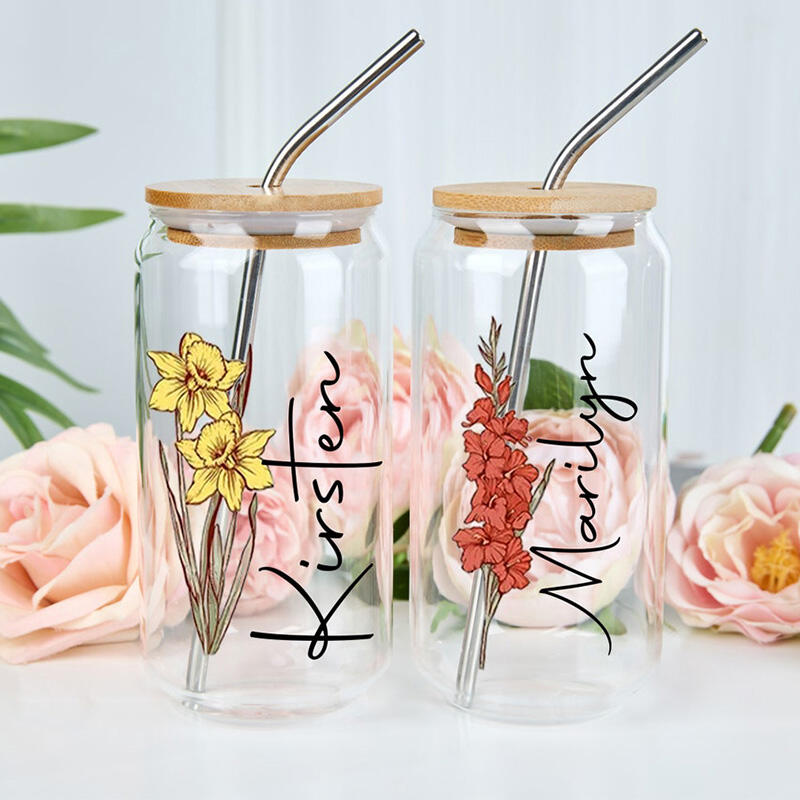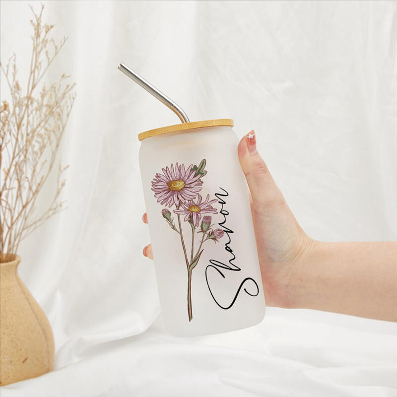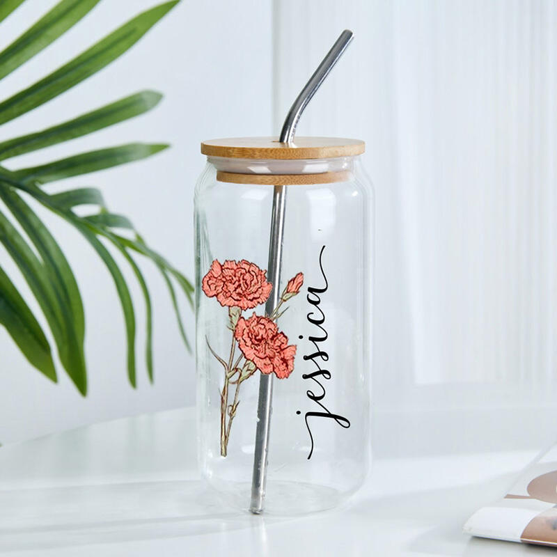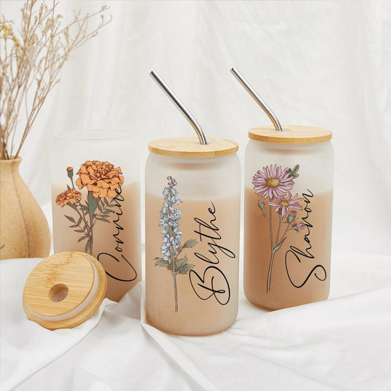 カスタマイズ 誕生花 名前 タピオカ コーヒー ガラス コップ タンブラー ストロー付き 蓋
