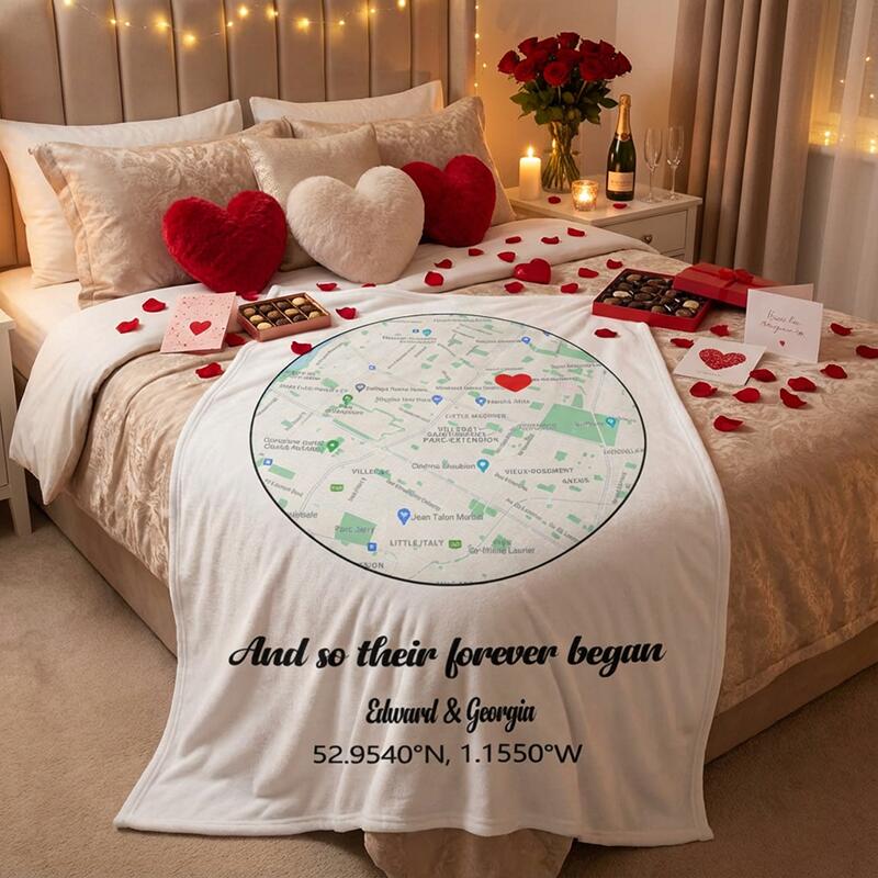 文字入れ 名入れ 地図 マップ ホワイト ブランケット オリジナル