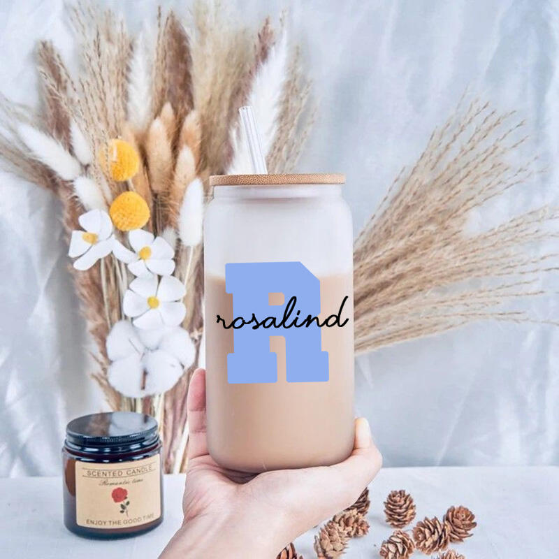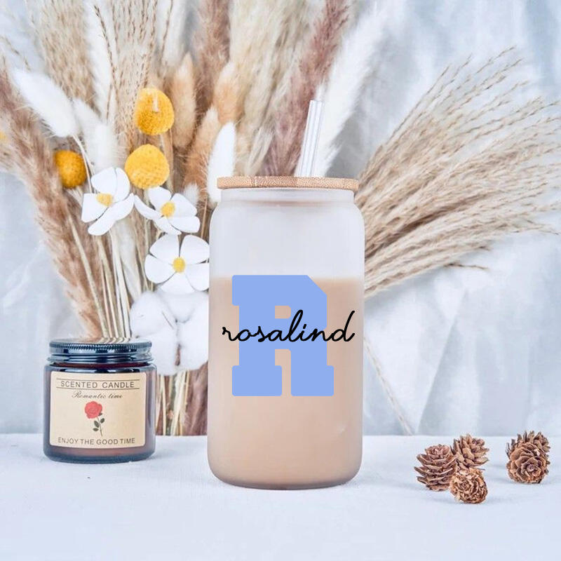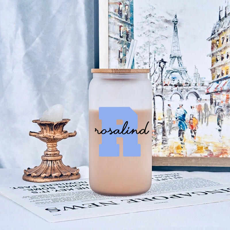 カスタマイズ イニシャル 名前 タピオカ コーヒー ガラス コップ タンブラー ストロー付き 蓋