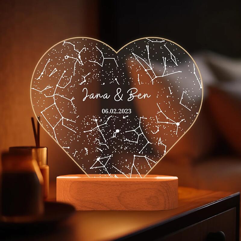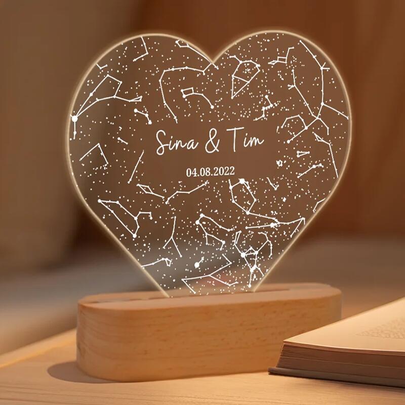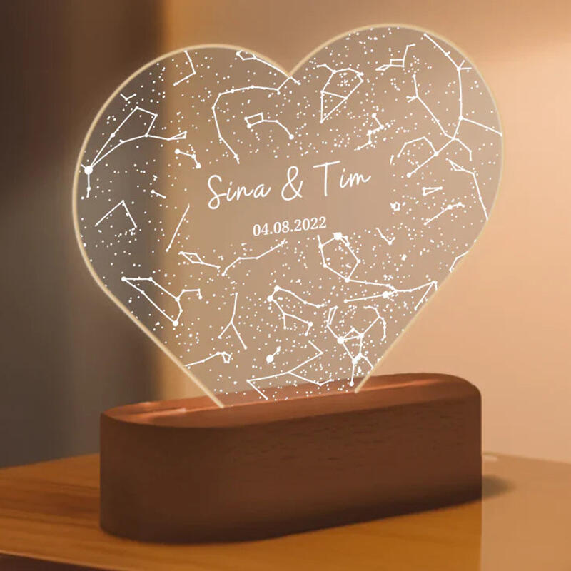 ハート形 星図 名入り 日付 アクリル led ナイトライト デスクランプ オーダーメイド