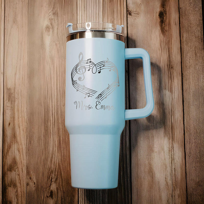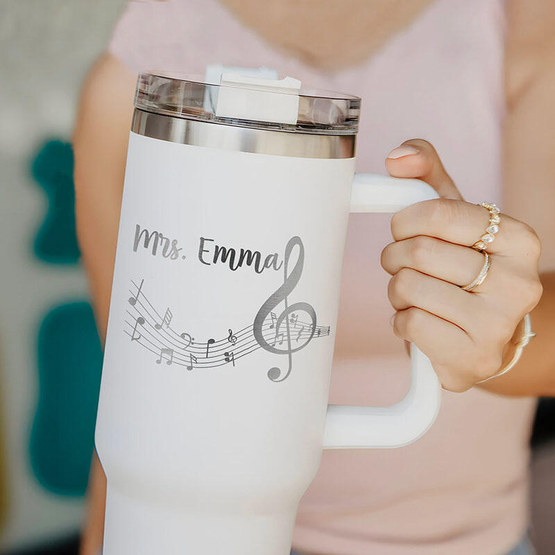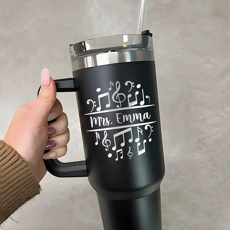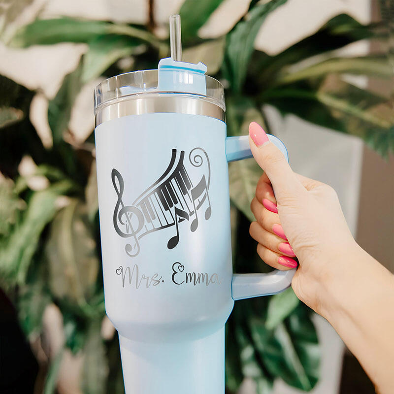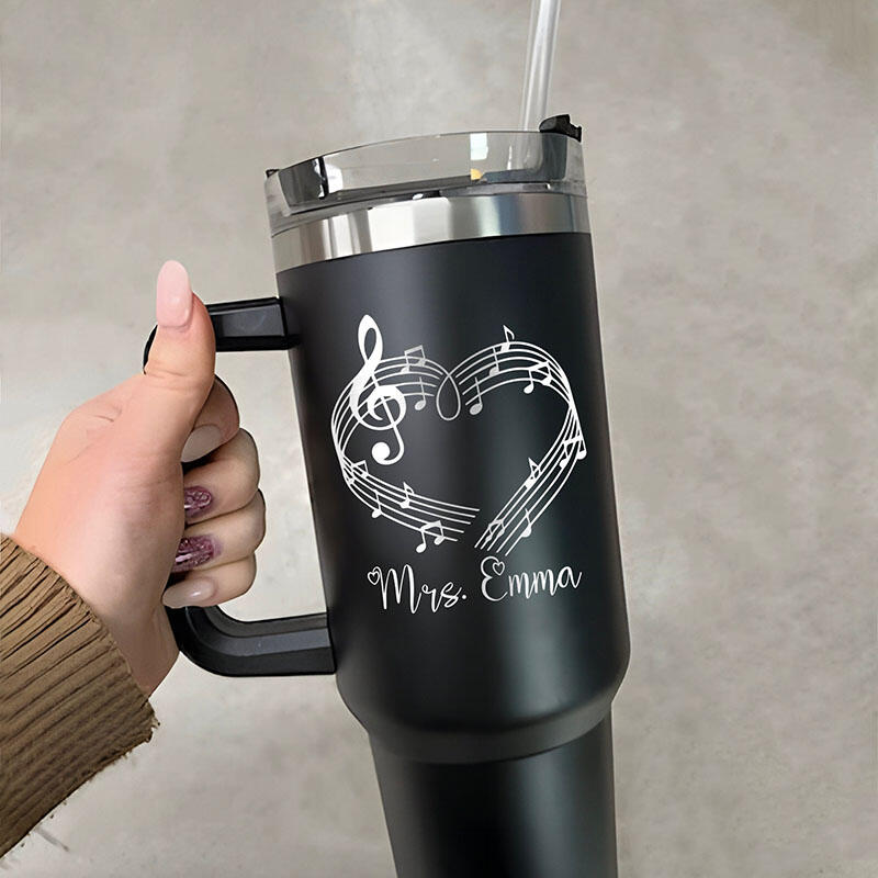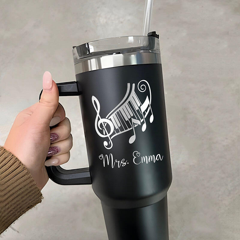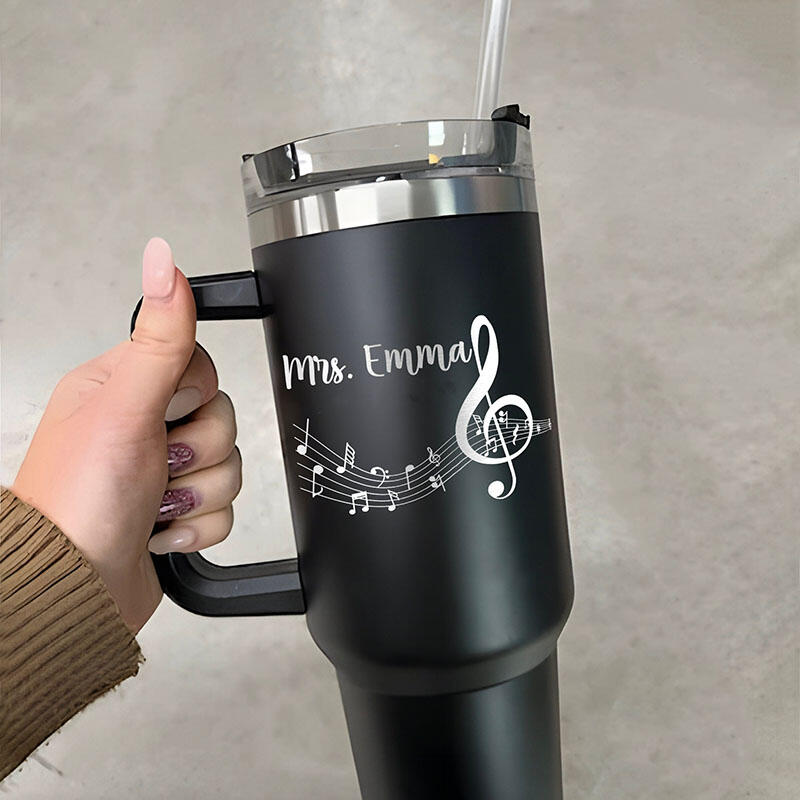 オーダーメイド ネーム入り 音楽記号柄 蓋付き 大容量 ストロー付き タンブラー おしゃれ 先生へのプレゼント 贈り物