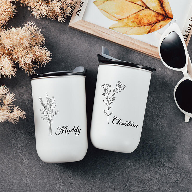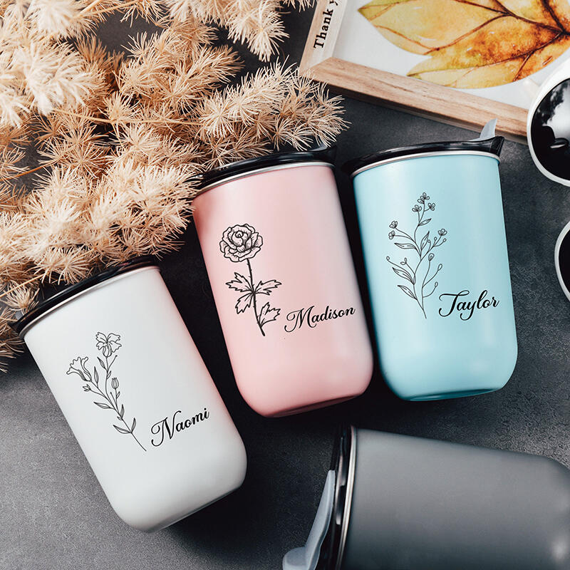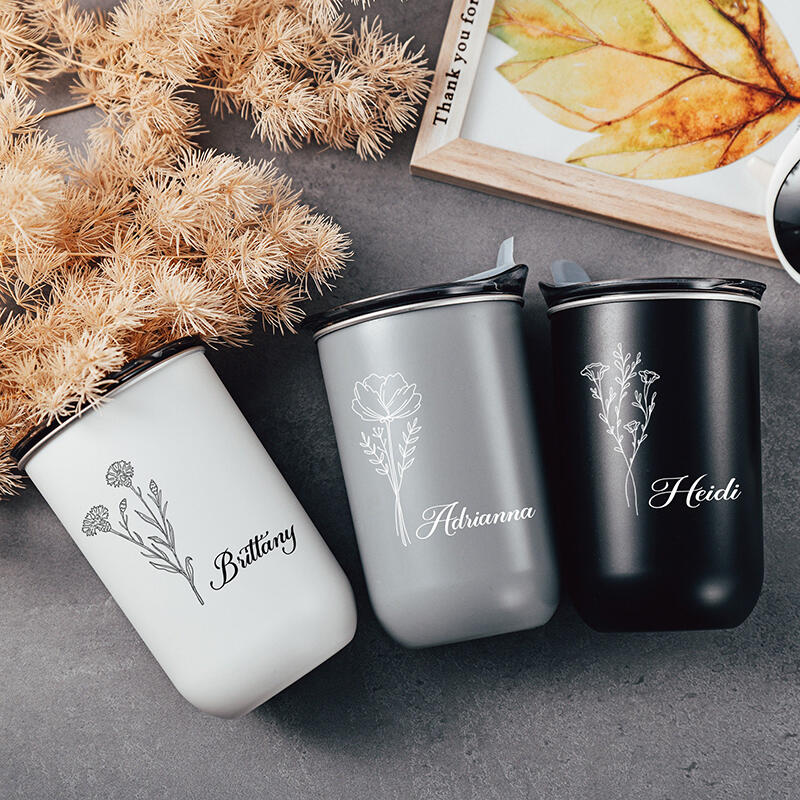 カスタマイズ 名入れ 誕生花 タンブラー ステンレス 300ml 真空断熱 蓋付き 保温 保冷 蓋付き