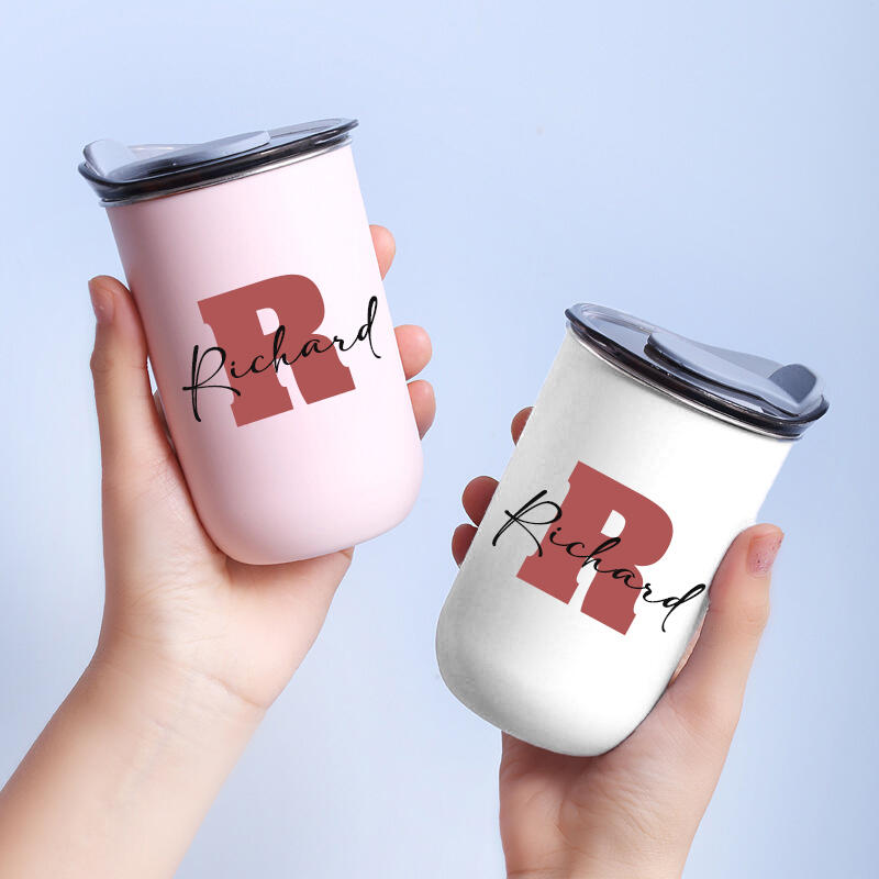 カスタマイズ イニシャル 名前 タンブラー ステンレス 300ml 真空断熱 蓋付き 保温 保冷 蓋付き