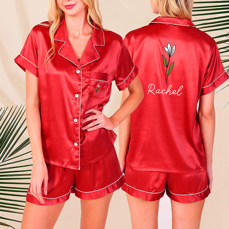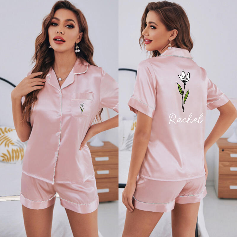 名入れ 誕生花 ショートパジャマ ルームウェア オリジナル