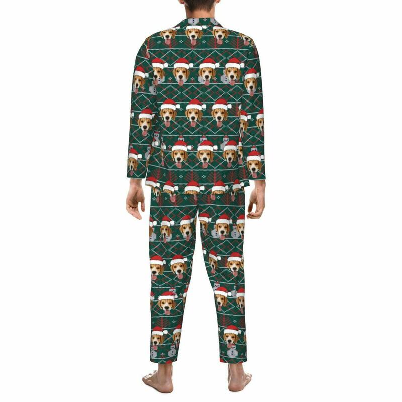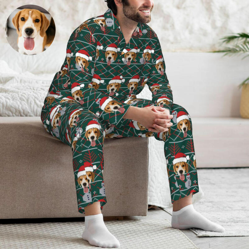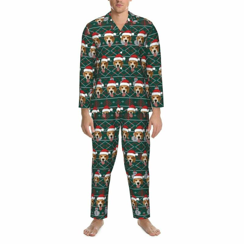 クリスマス チェク柄 犬 写真 サンタ ハット パジャマ ルームウェア オリジナル
