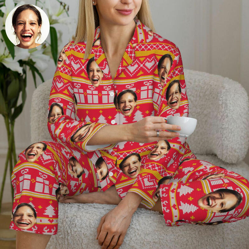 写真入れ クリスマス 雪柄 可愛い レディース パジャマ ルームウェア オリジナル