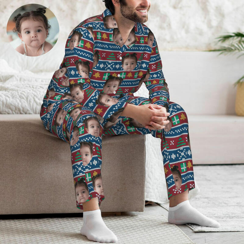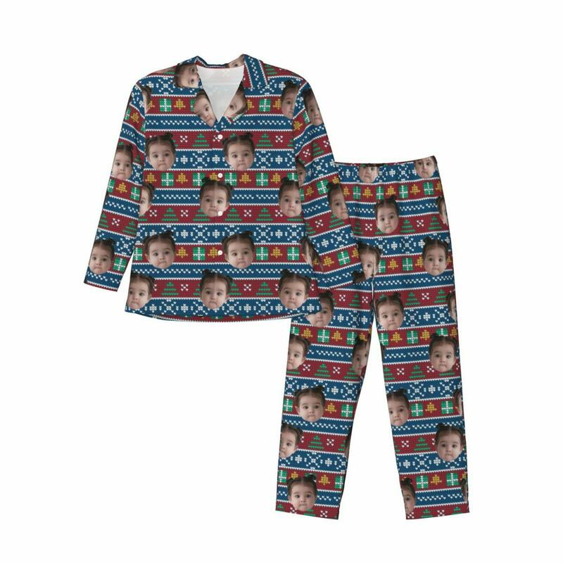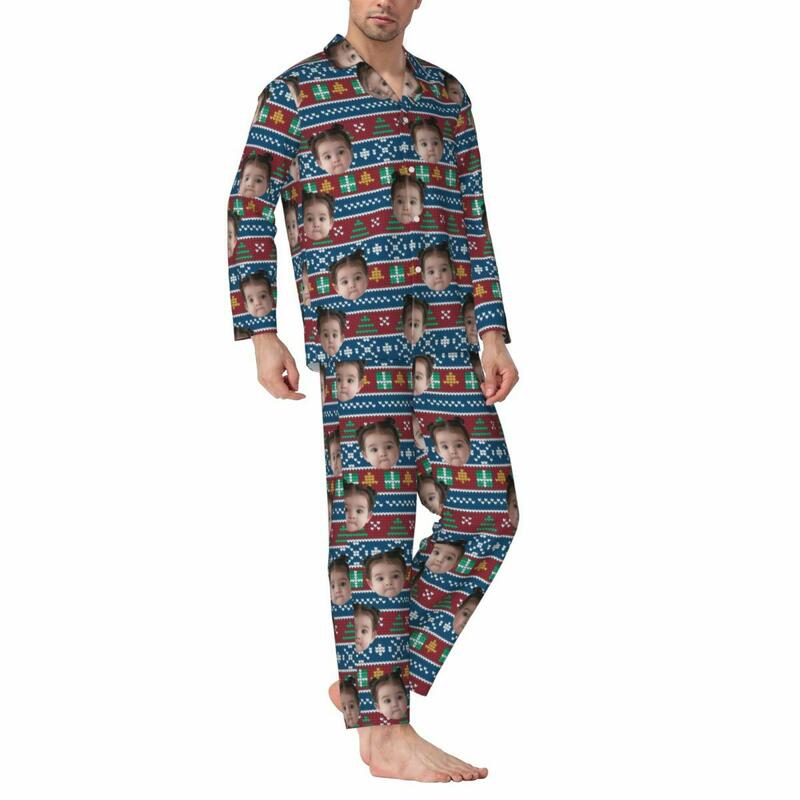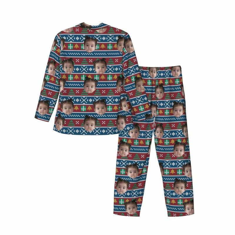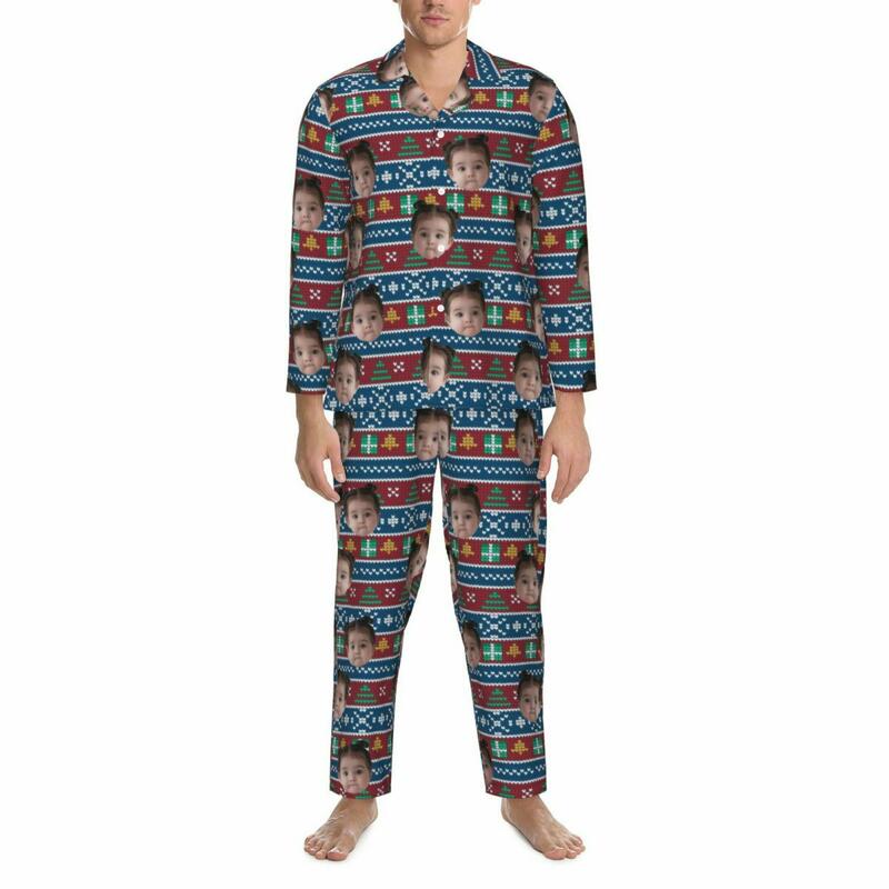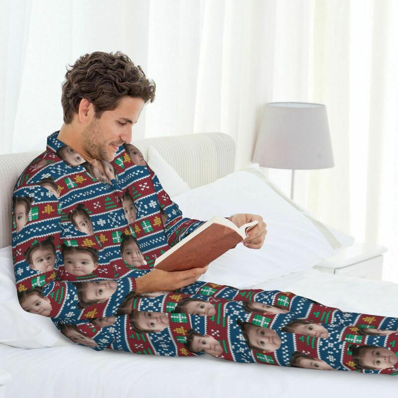写真入れ 家族 キッズ クリスマス 雪柄 クラシック パジャマ ルームウェア オリジナル
