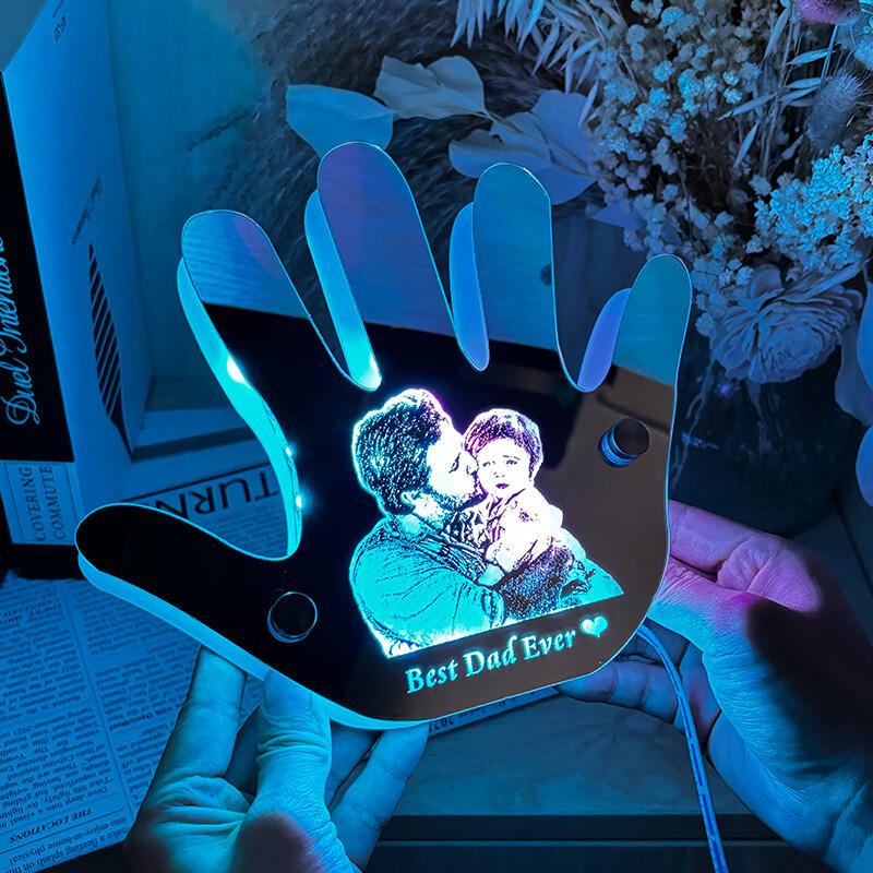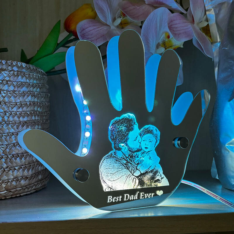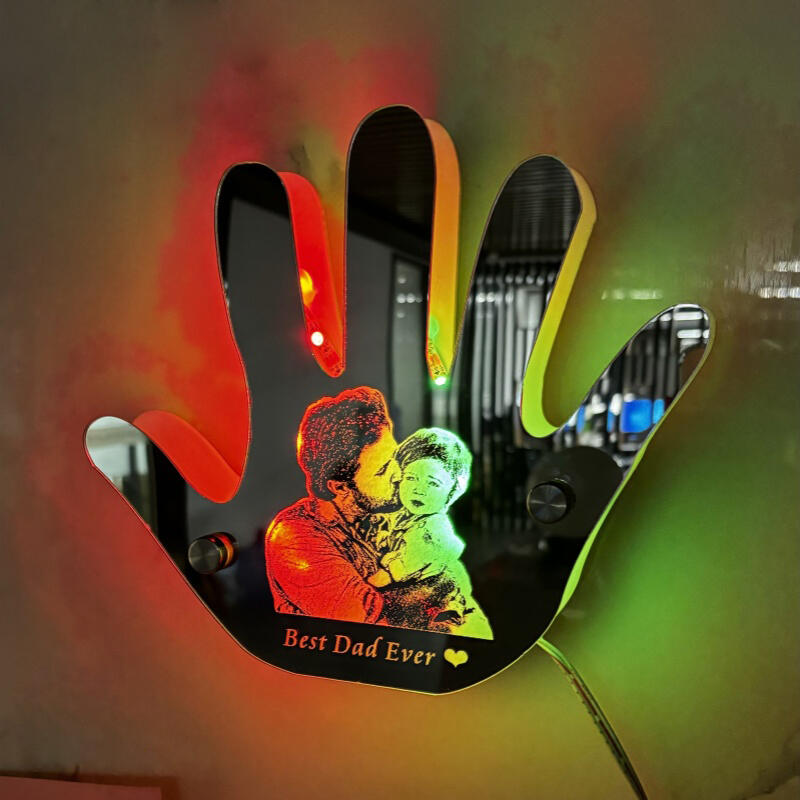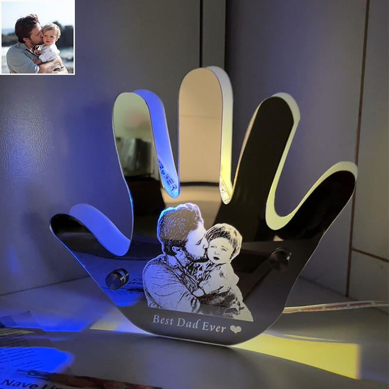カスタムイズ 手 ハンド 写真入れ メッセージ入り ミラー 発光 ライト 壁掛け 屋内装飾 リモコン付き 壁フック付き 父の日 プレゼント
