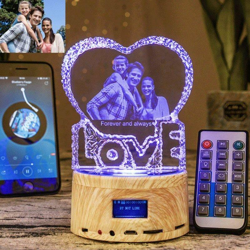 Bluetooth スピーカー搭載 写真入れ 刻印 クリスタル ランプ