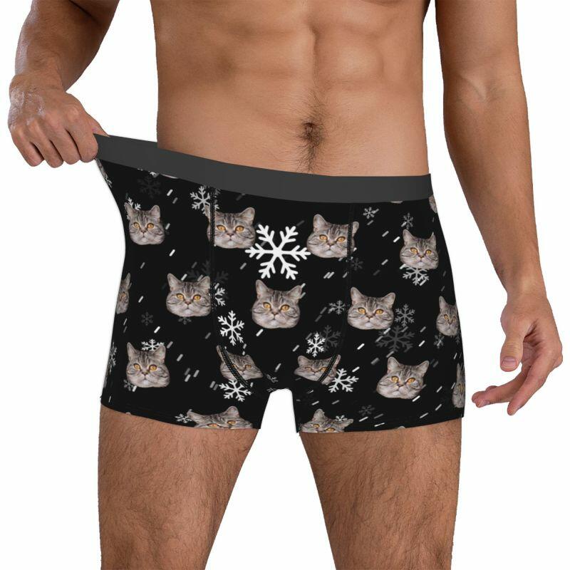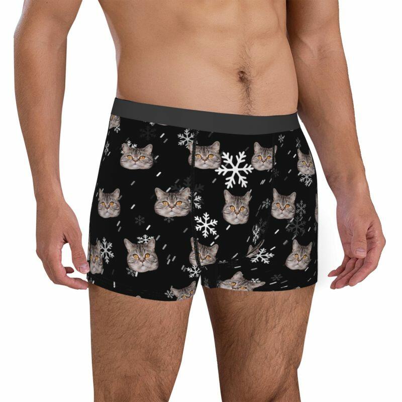 猫 雪柄 ペット 顔 写真 男性用 下着 パンツ オーダーメイド