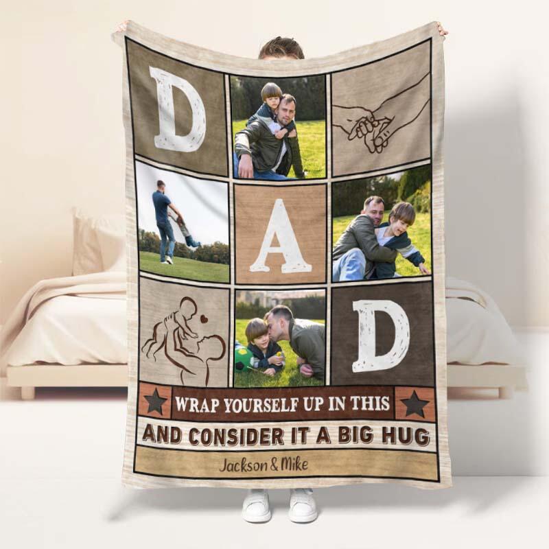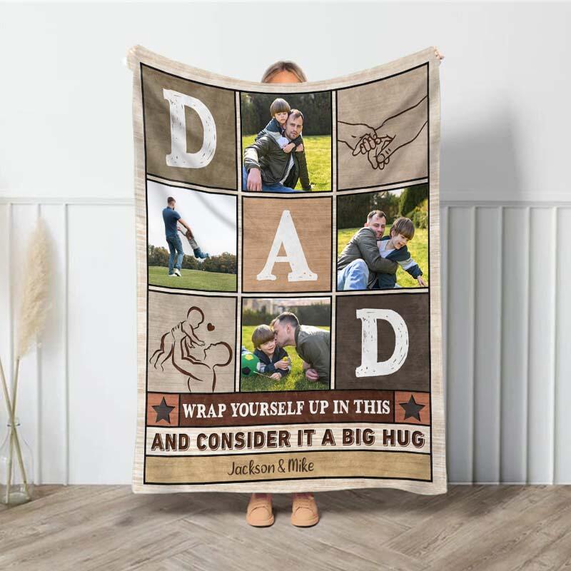 写真 名前 親子 握手 父の日 イニシャル ハグ オリジナル ブランケット